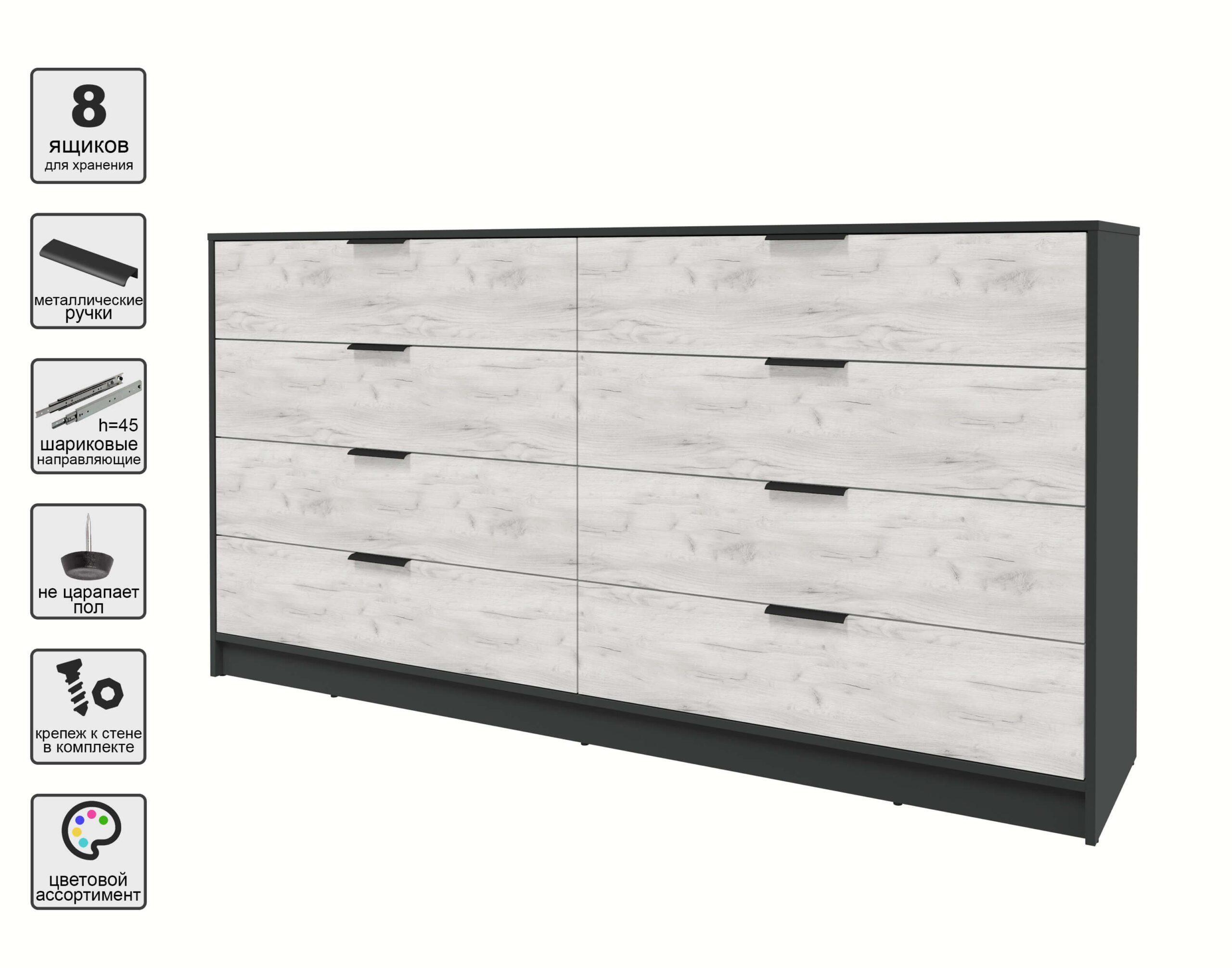 KОМОД КТ-К197 (АНТРАЦИТ ЛДСП/ ДУБ БЕЛЫЙ ЛДСП) Ш1965 В1020 Г451 - Yuta.by