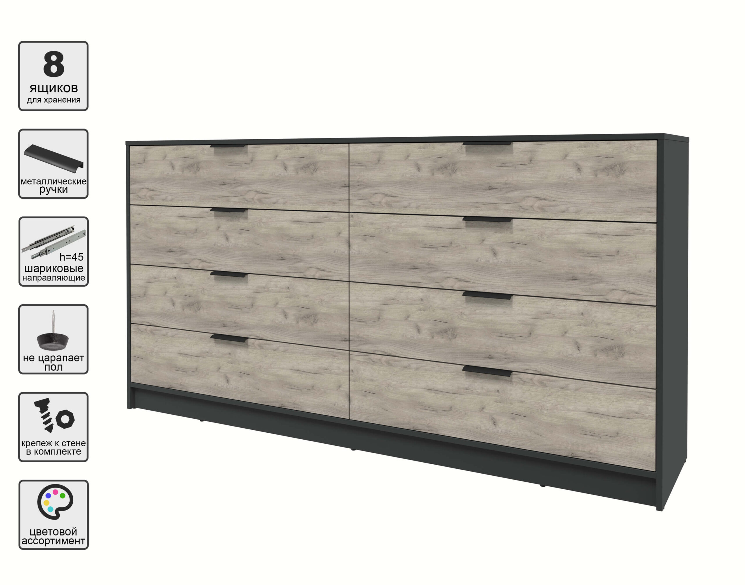 KОМОД КТ-К197 (АНТРАЦИТ ЛДСП/ ДУБ СЕРЫЙ ЛДСП) Ш1965 В1020 Г451 - Yuta.by