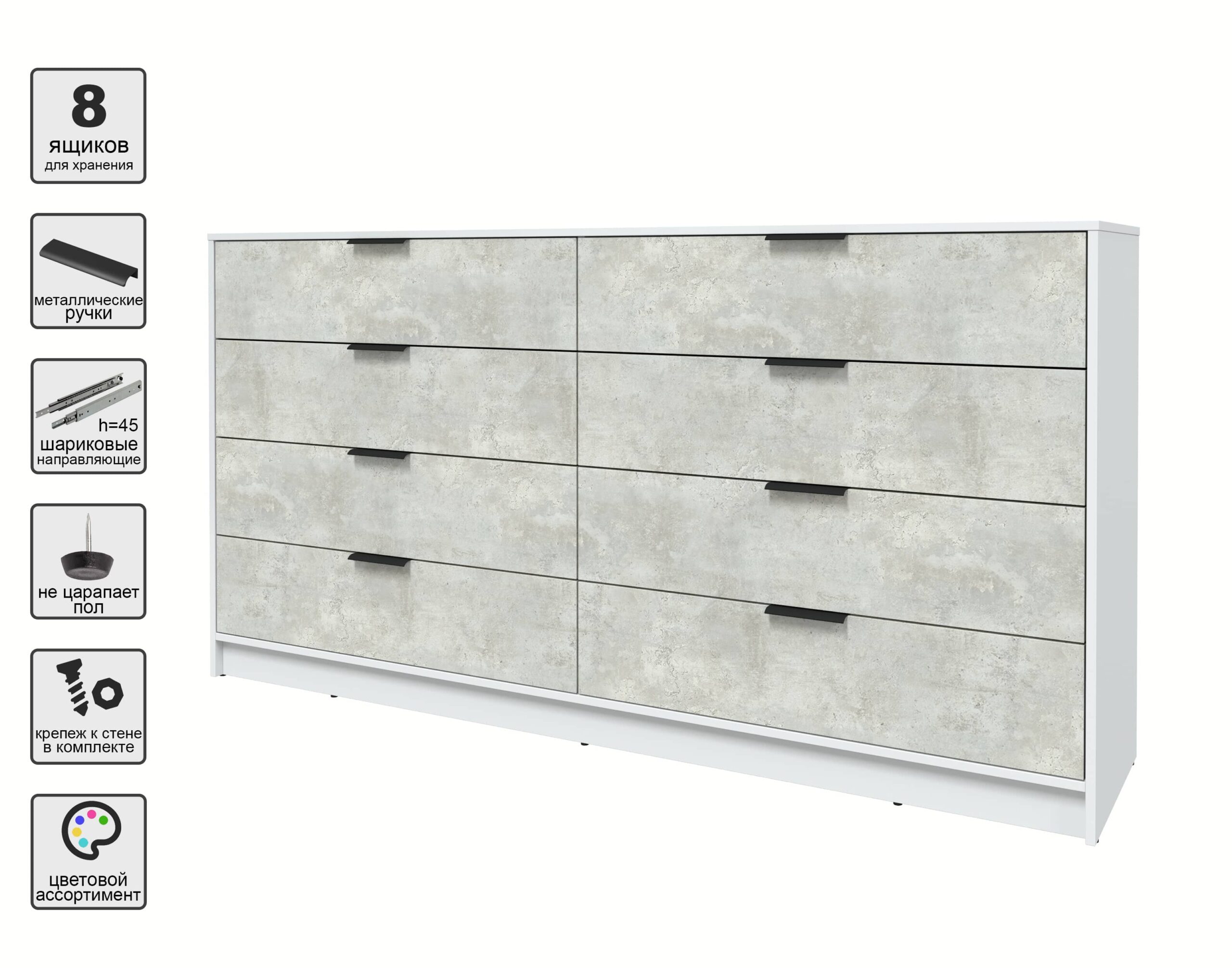 KОМОД КТ-К197 (БЕЛЫЙ ЛДСП/ БЕТОН ЛАЙТ ЛДСП) Ш1965 В1020 Г451