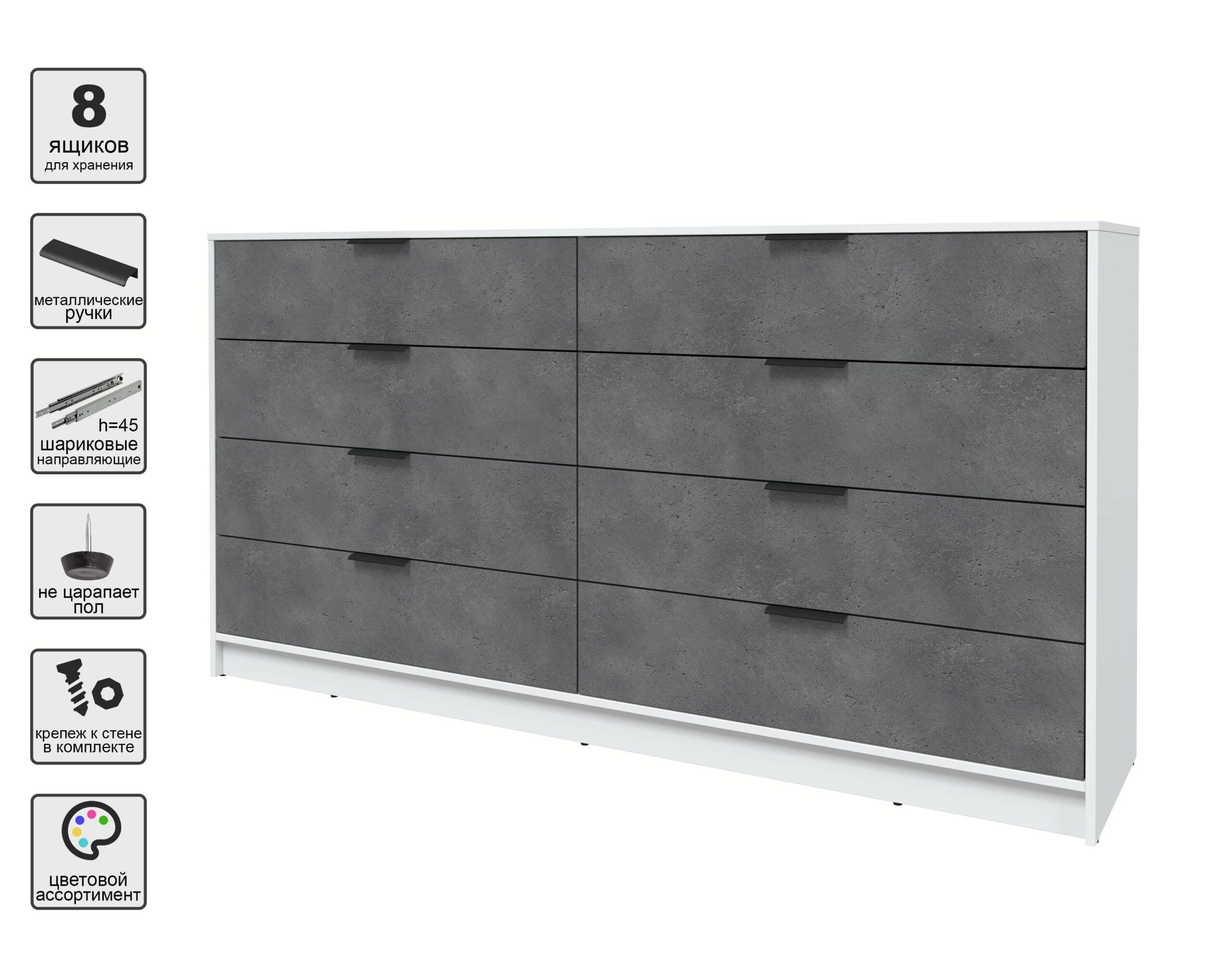 KОМОД КТ-К197 (БЕЛЫЙ ЛДСП/ БЕТОН ПОРТЛЕНД ЛДСП) Ш1965 В1020 Г451