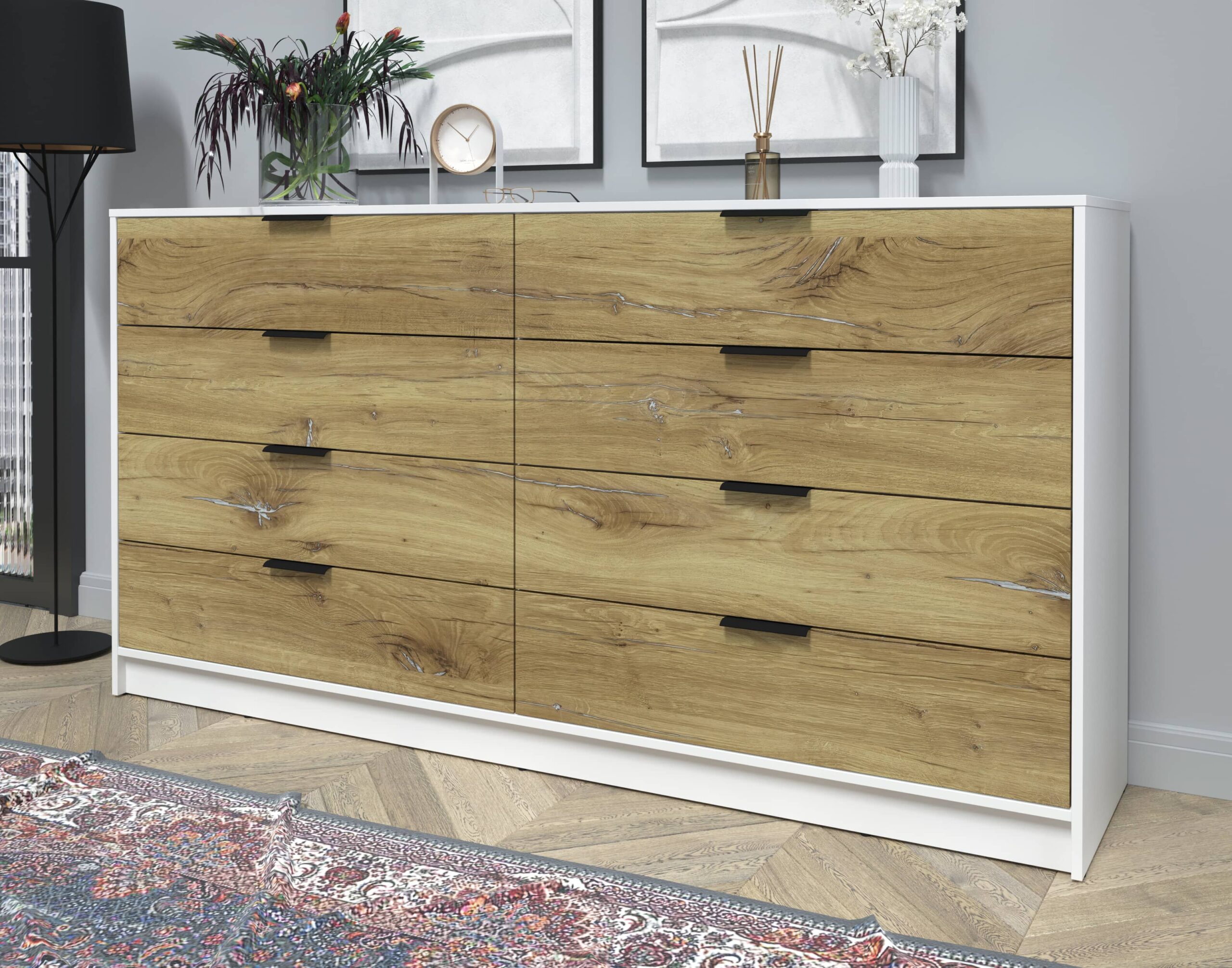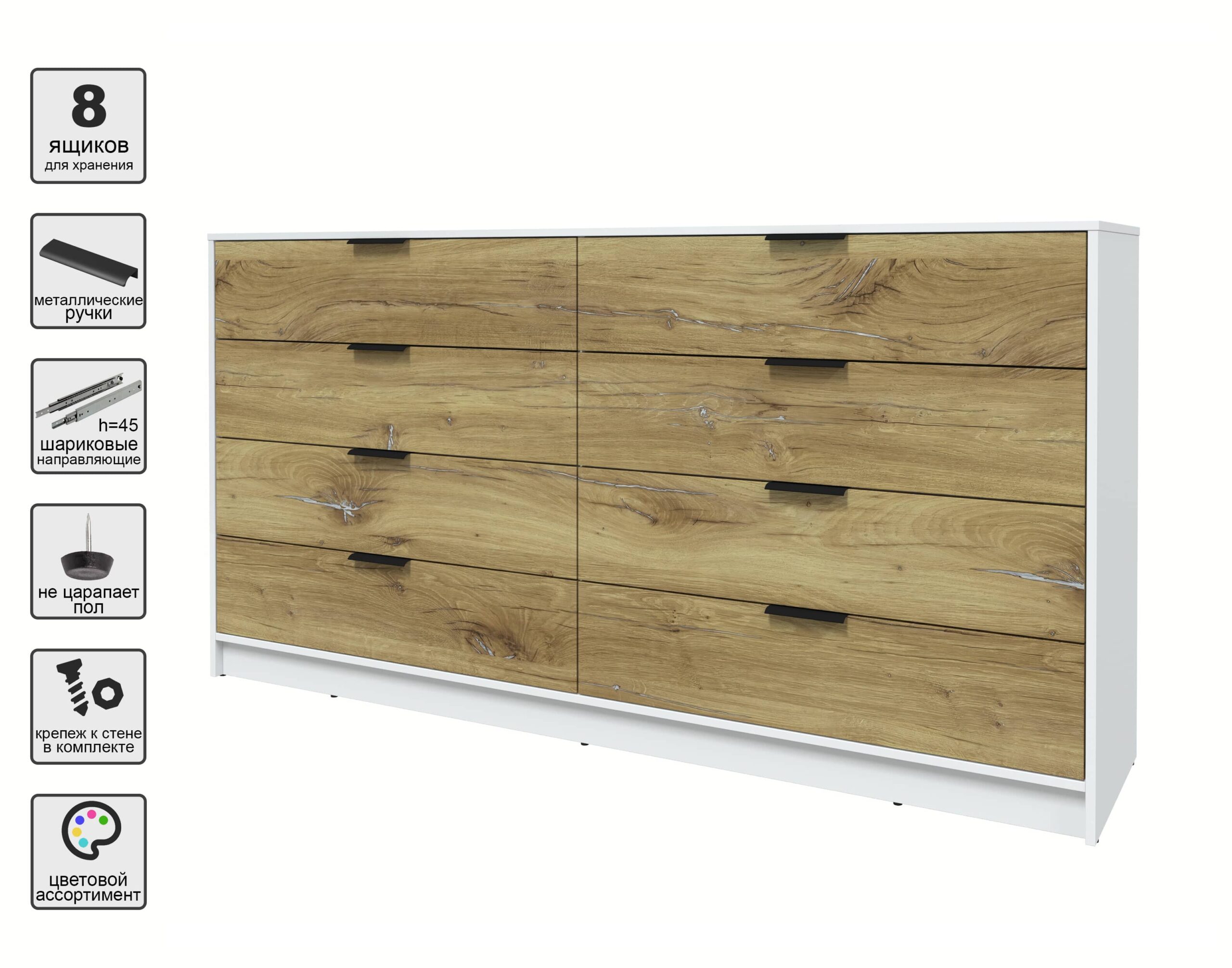 KОМОД КТ-К197 (БЕЛЫЙ ЛДСП/ ДУБ НОКС ЛДСП) Ш1965 В1020 Г451