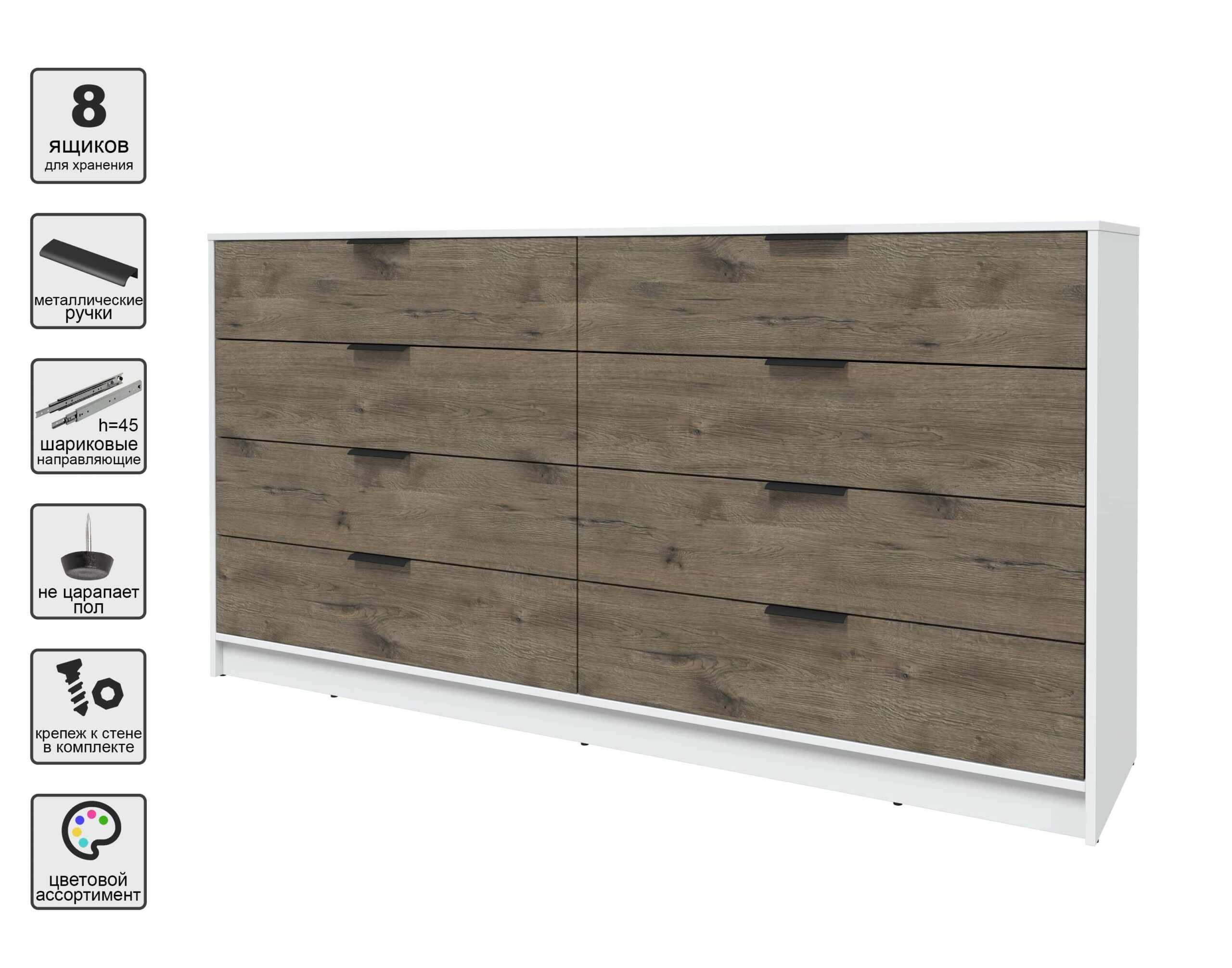 KОМОД КТ-К197 (БЕЛЫЙ ЛДСП/ ДУБ ВЕЛЛИНГТОН ЛДСП) Ш1965 В1020 Г451