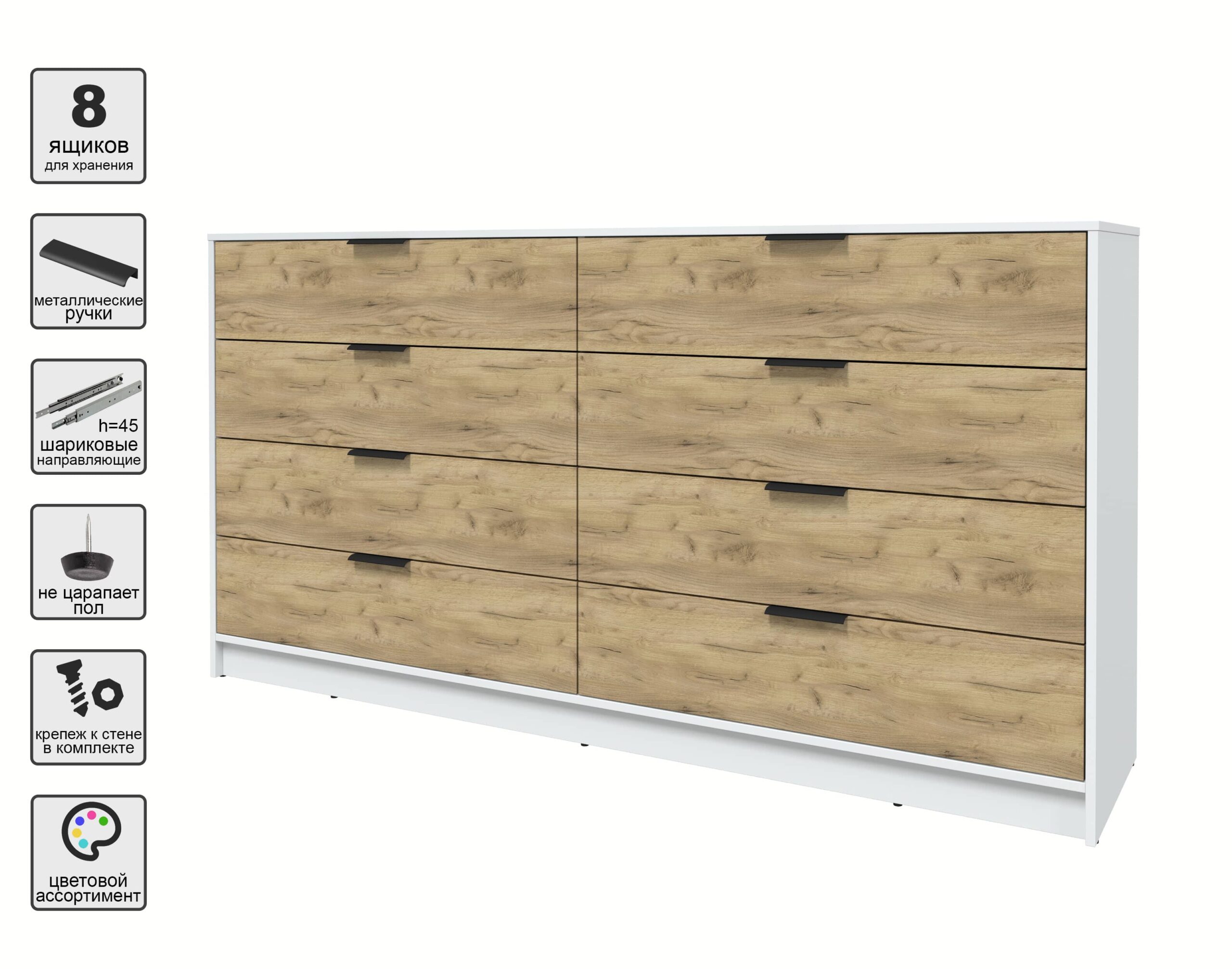 KОМОД КТ-К197 (БЕЛЫЙ ЛДСП/ ДУБ ЗОЛОТОЙ ЛДСП) Ш1965 В1020 Г451