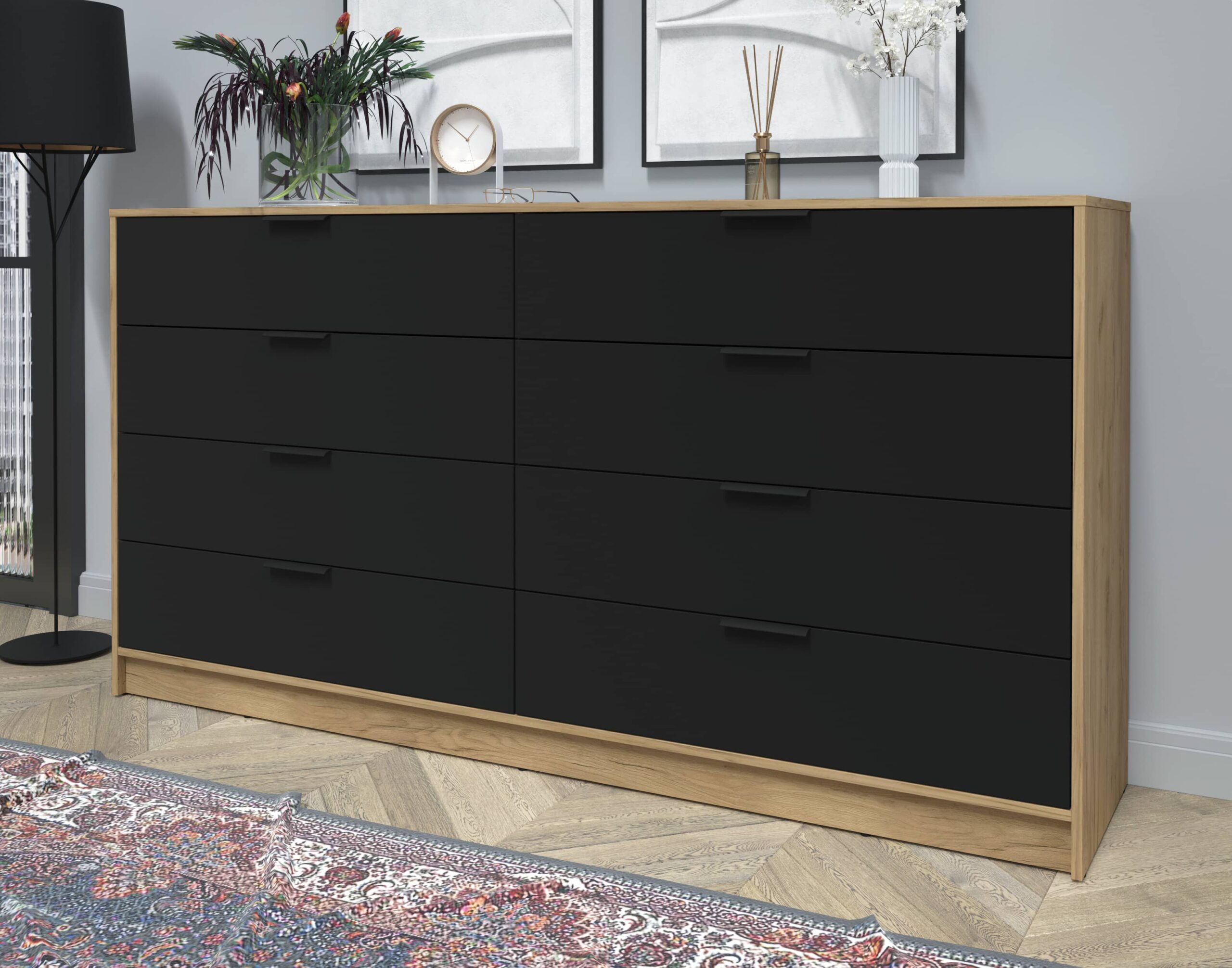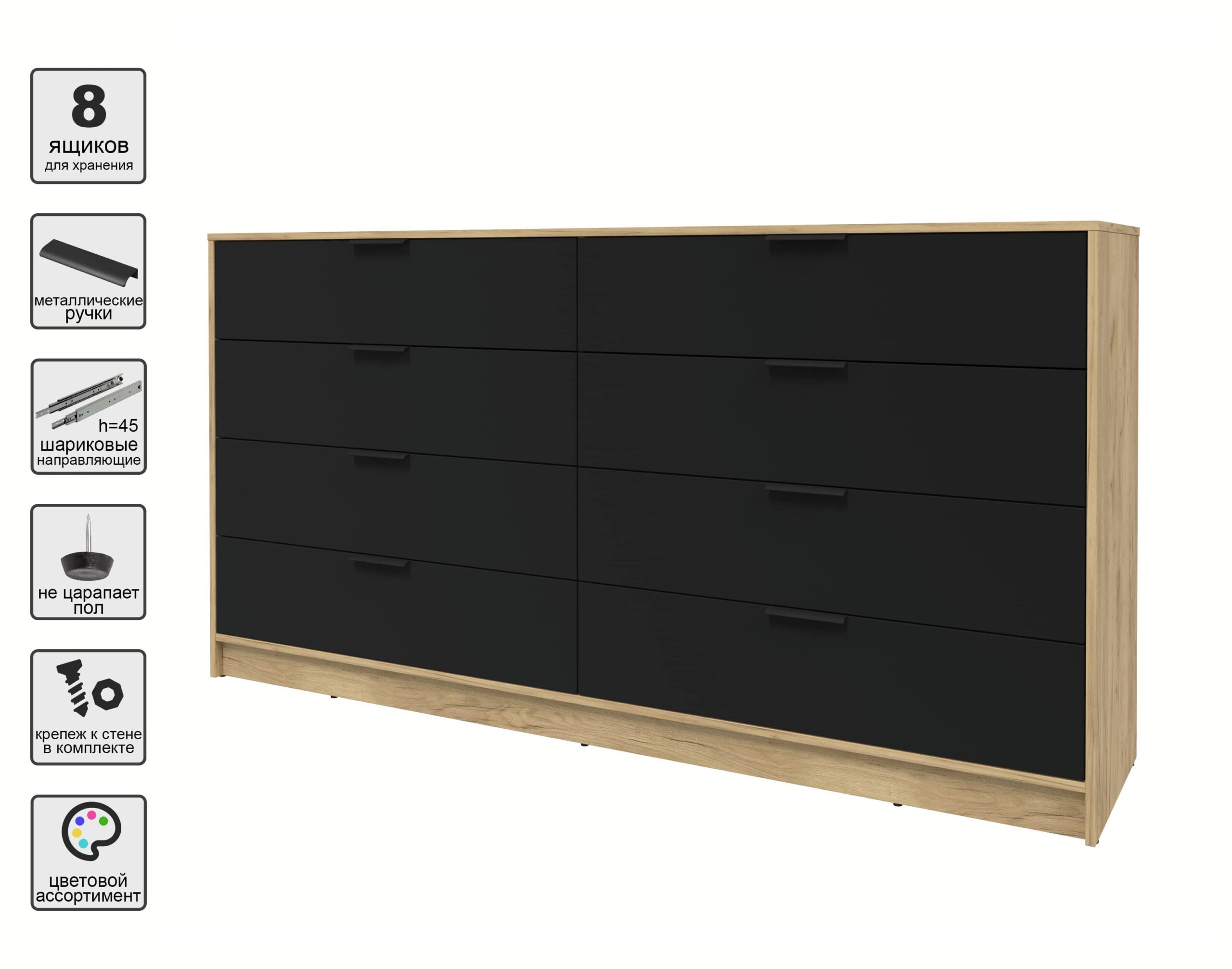 KОМОД КТ-К197 (ДУБ ЗОЛОТОЙ ЛДСП/ ЧЕРНЫЙ ЛДСП) Ш1965 В1020 Г451 - Yuta.by