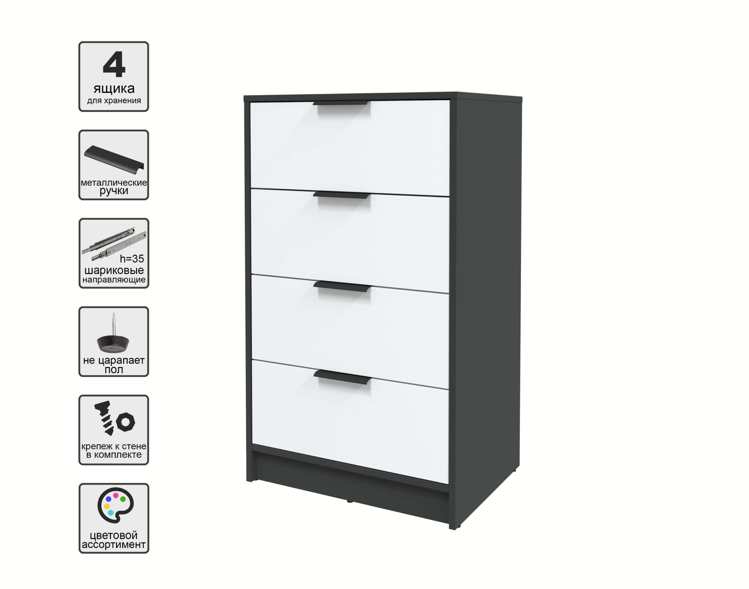 KОМОД КТ-К60 (АНТРАЦИТ ЛДСП/ БЕЛЫЙ ПЛАТИНУМ ЛДСП) Ш600 В1020 Г451 - Yuta.by