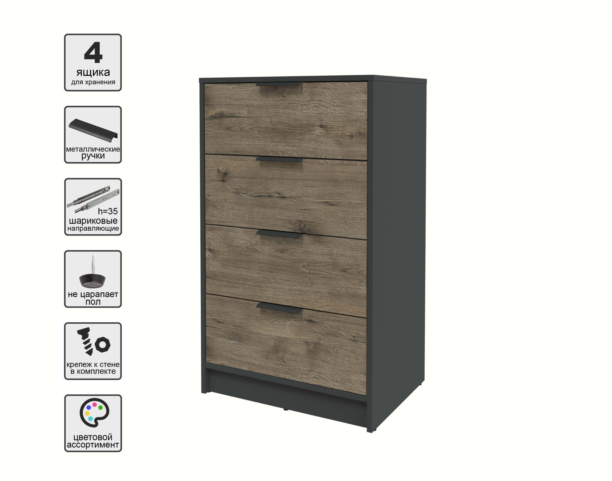KОМОД КТ-К60 (АНТРАЦИТ ЛДСП/ ДУБ ВЕЛЛИНГТОН ЛДСП) Ш600 В1020 Г451 - Yuta.by