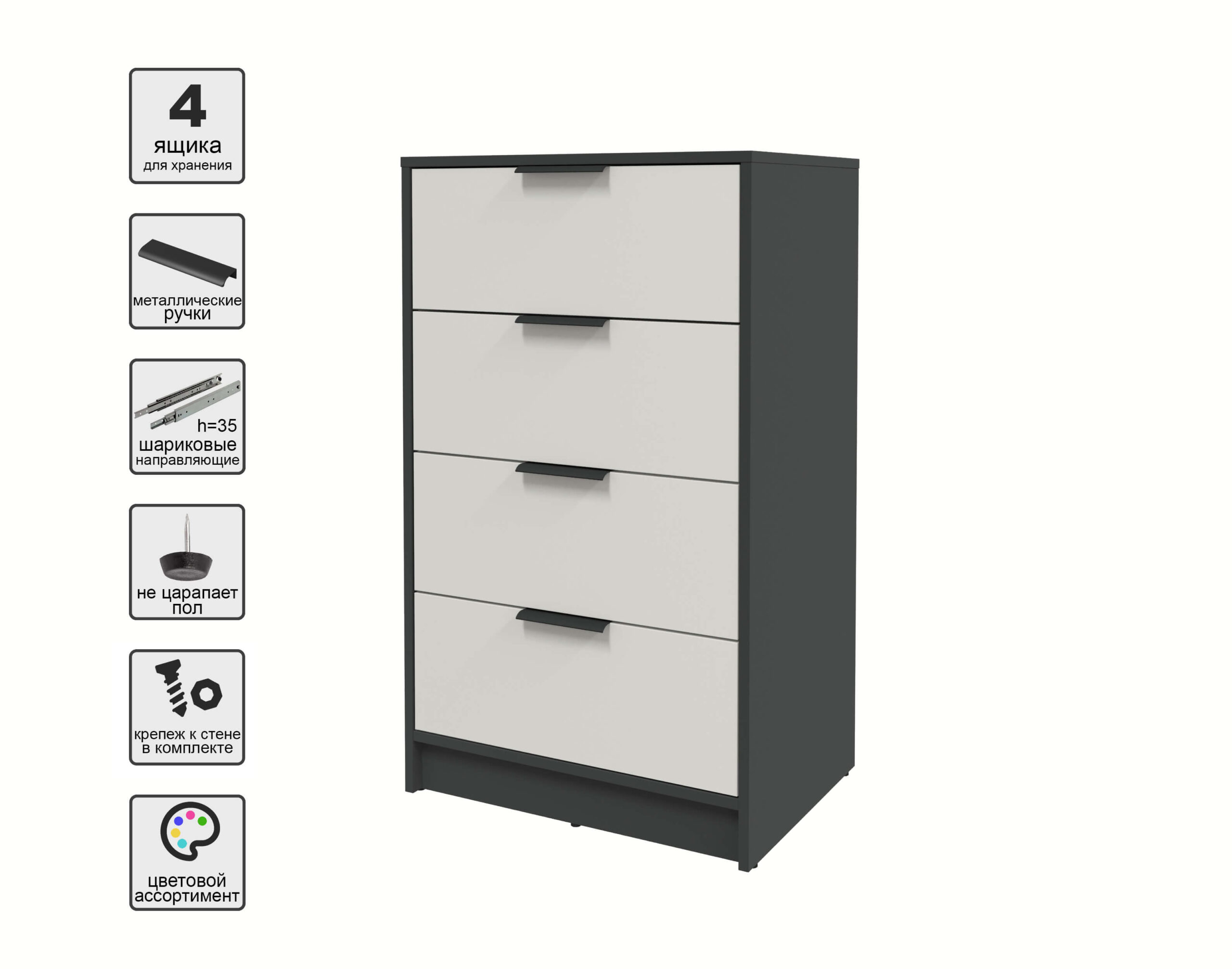 KОМОД КТ-К60 (АНТРАЦИТ ЛДСП/ ПЕРСИДСКИЙ ЖЕМЧУГ ЛДСП) Ш600 В1020 Г451