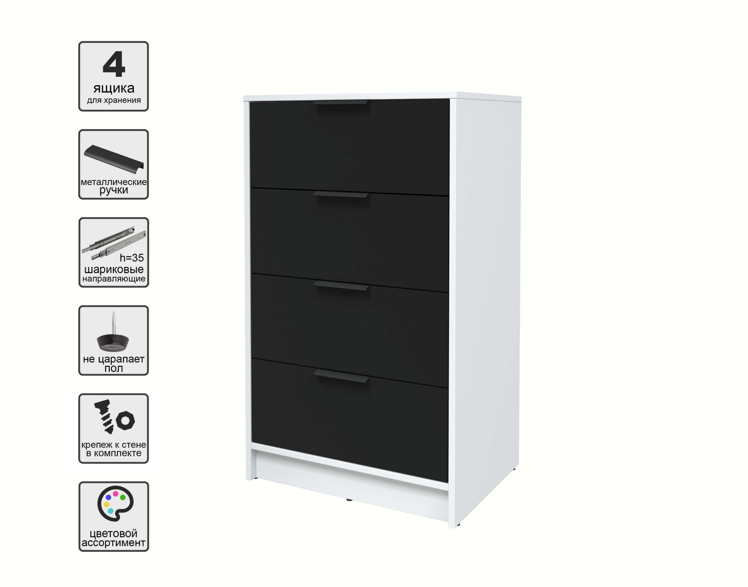 KОМОД КТ-К60 (БЕЛЫЙ ЛДСП/ ЧЕРНЫЙ ЛДСП) Ш600 В1020 Г451
