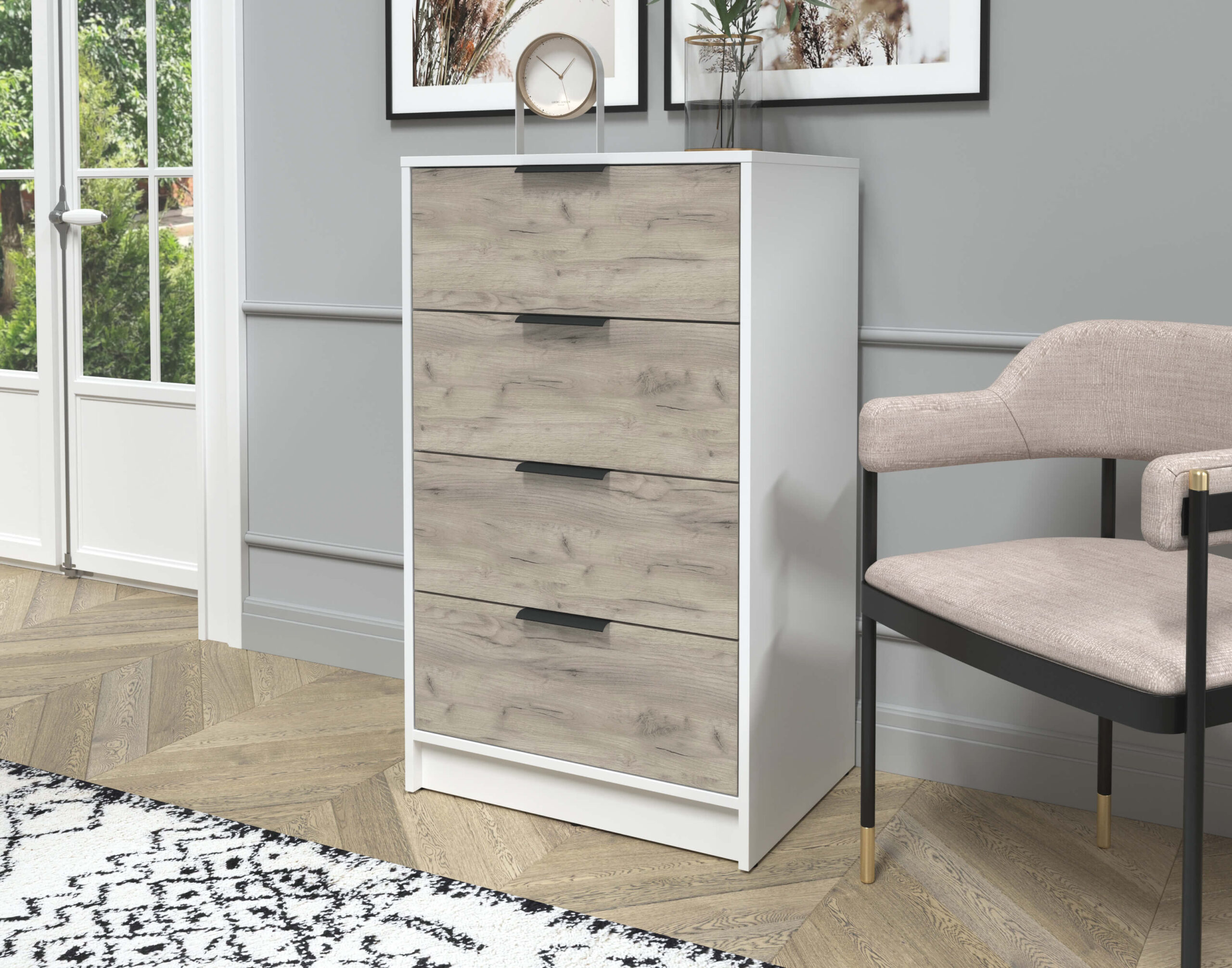 KОМОД КТ-К60 (БЕЛЫЙ ЛДСП/ ДУБ СЕРЫЙ ЛДСП) Ш600 В1020 Г451 - Yuta.by