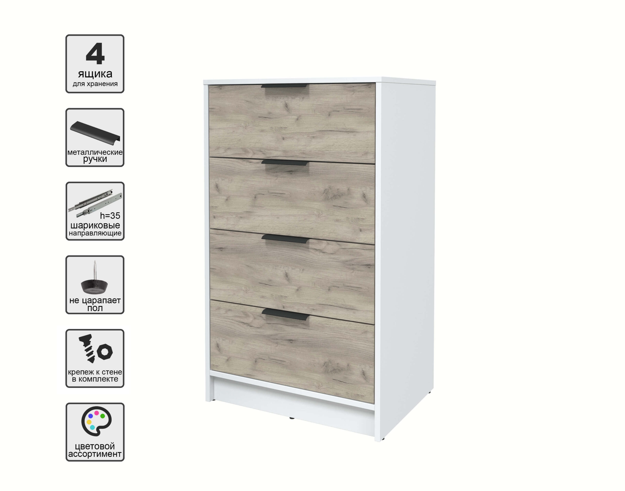 KОМОД КТ-К60 (БЕЛЫЙ ЛДСП/ ДУБ СЕРЫЙ ЛДСП) Ш600 В1020 Г451