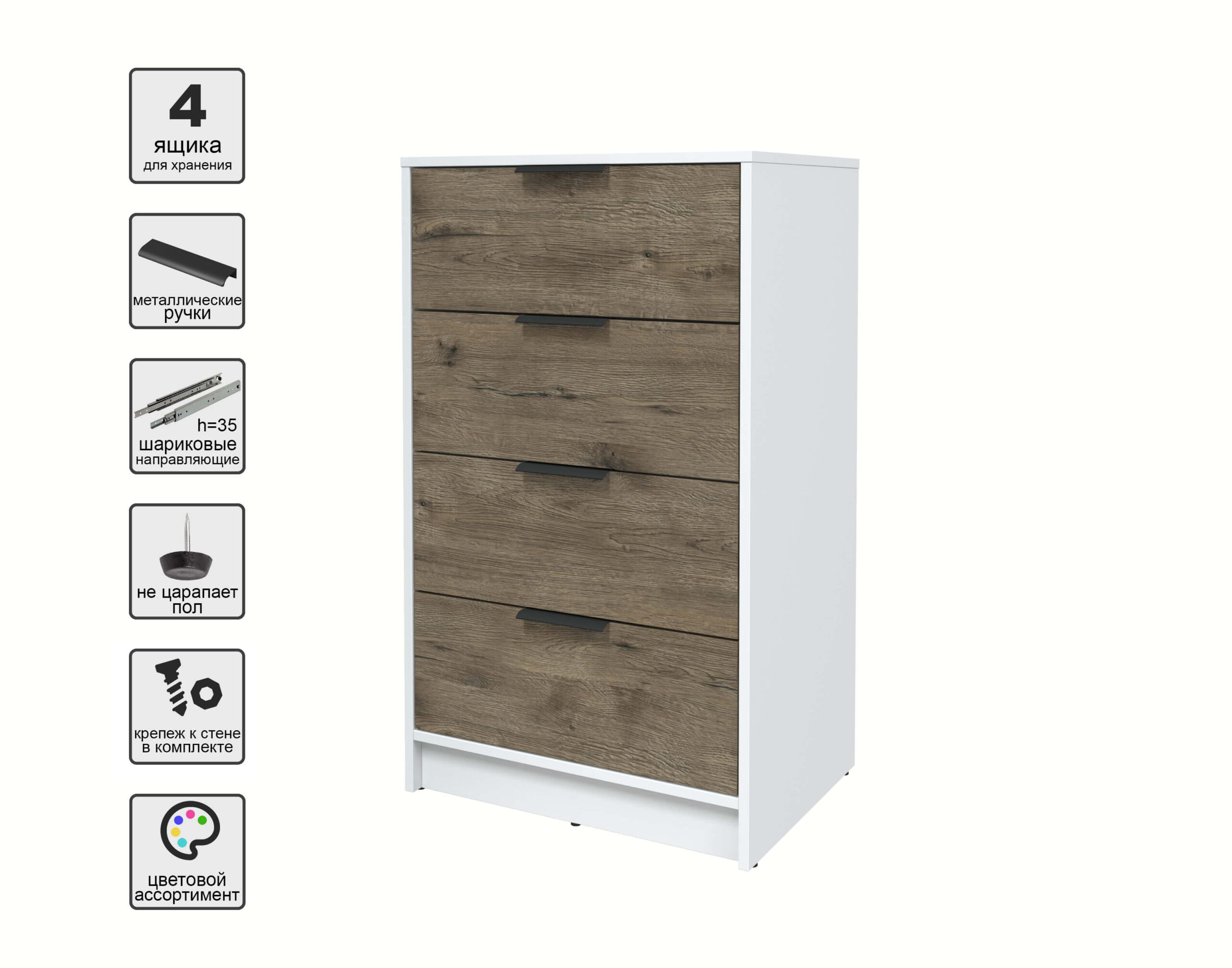 KОМОД КТ-К60 (БЕЛЫЙ ЛДСП/ ДУБ ВЕЛЛИНГТОН ЛДСП) Ш600 В1020 Г451