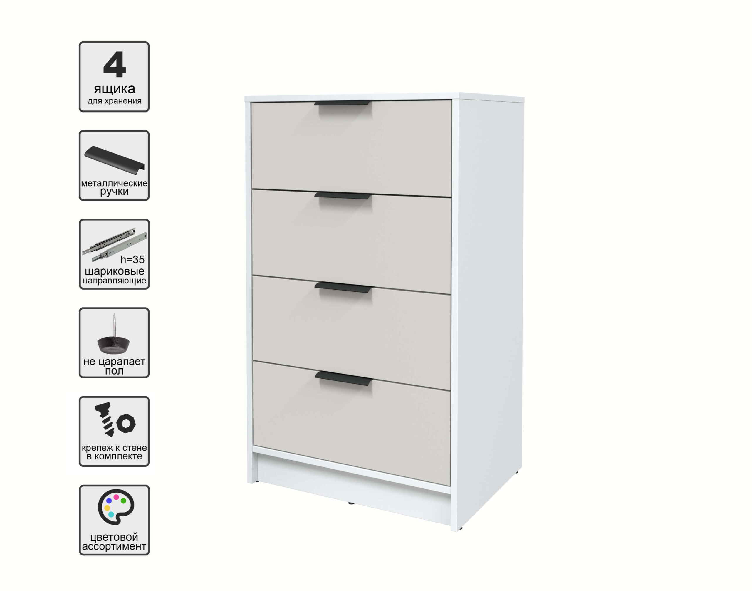 KОМОД КТ-К60 (БЕЛЫЙ ЛДСП/ ПЕРСИДСКИЙ ЖЕМЧУГ ЛДСП) Ш600 В1020 Г451