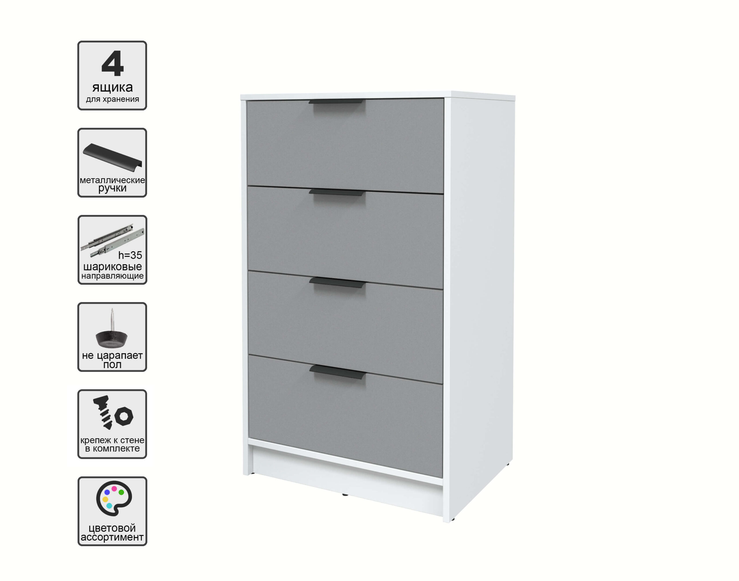 KОМОД КТ-К60 (БЕЛЫЙ ЛДСП/ СЕРЕБРО ЛДСП) Ш600 В1020 Г451