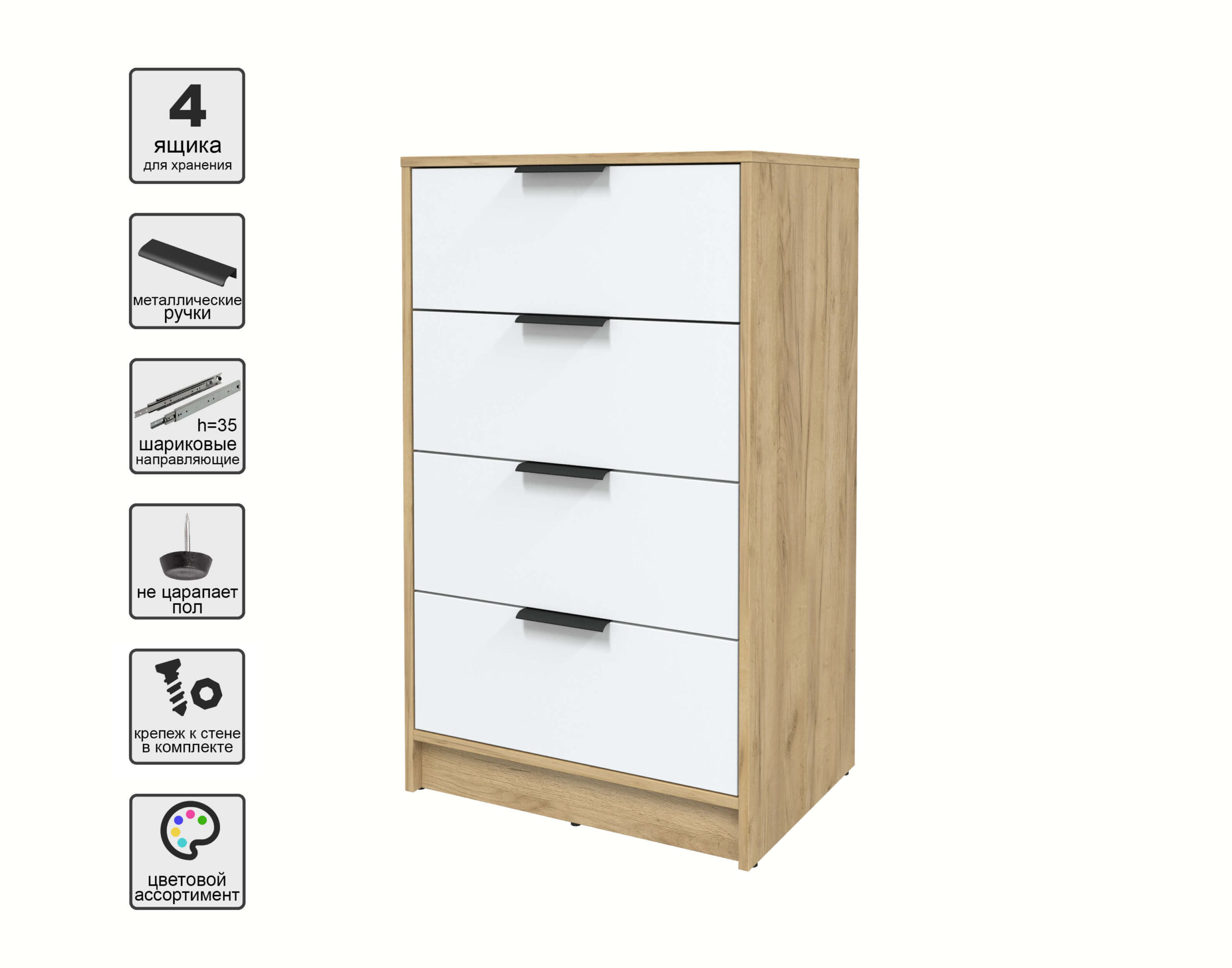 KОМОД КТ-К60 (ДУБ ЗОЛОТОЙ ЛДСП/ БЕЛЫЙ ПЛАТИНУМ ЛДСП) Ш600 В1020 Г451 - Yuta.by