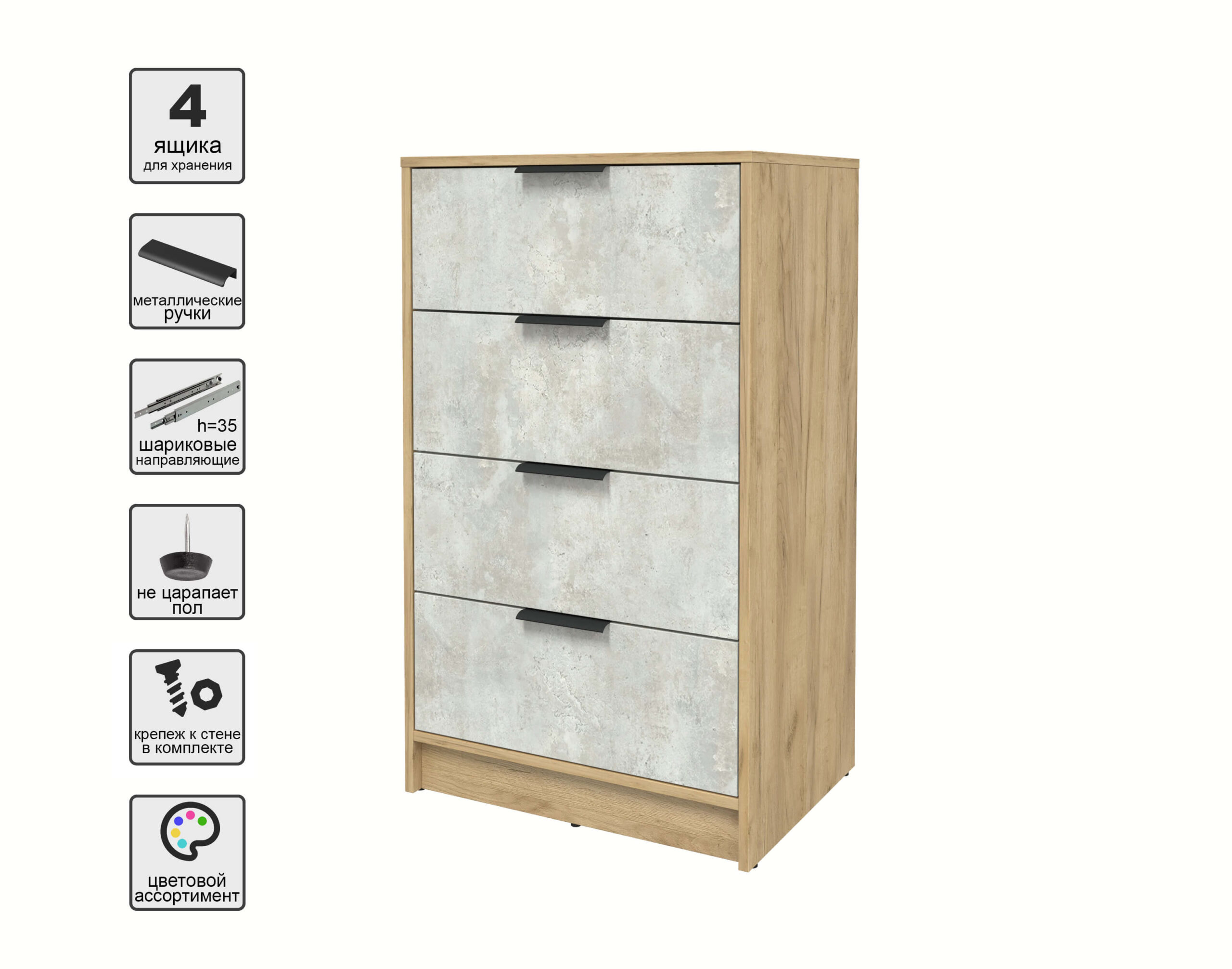 KОМОД КТ-К60 (ДУБ ЗОЛОТОЙ ЛДСП/ БЕТОН ЛАЙТ ЛДСП) Ш600 В1020 Г451 - Yuta.by