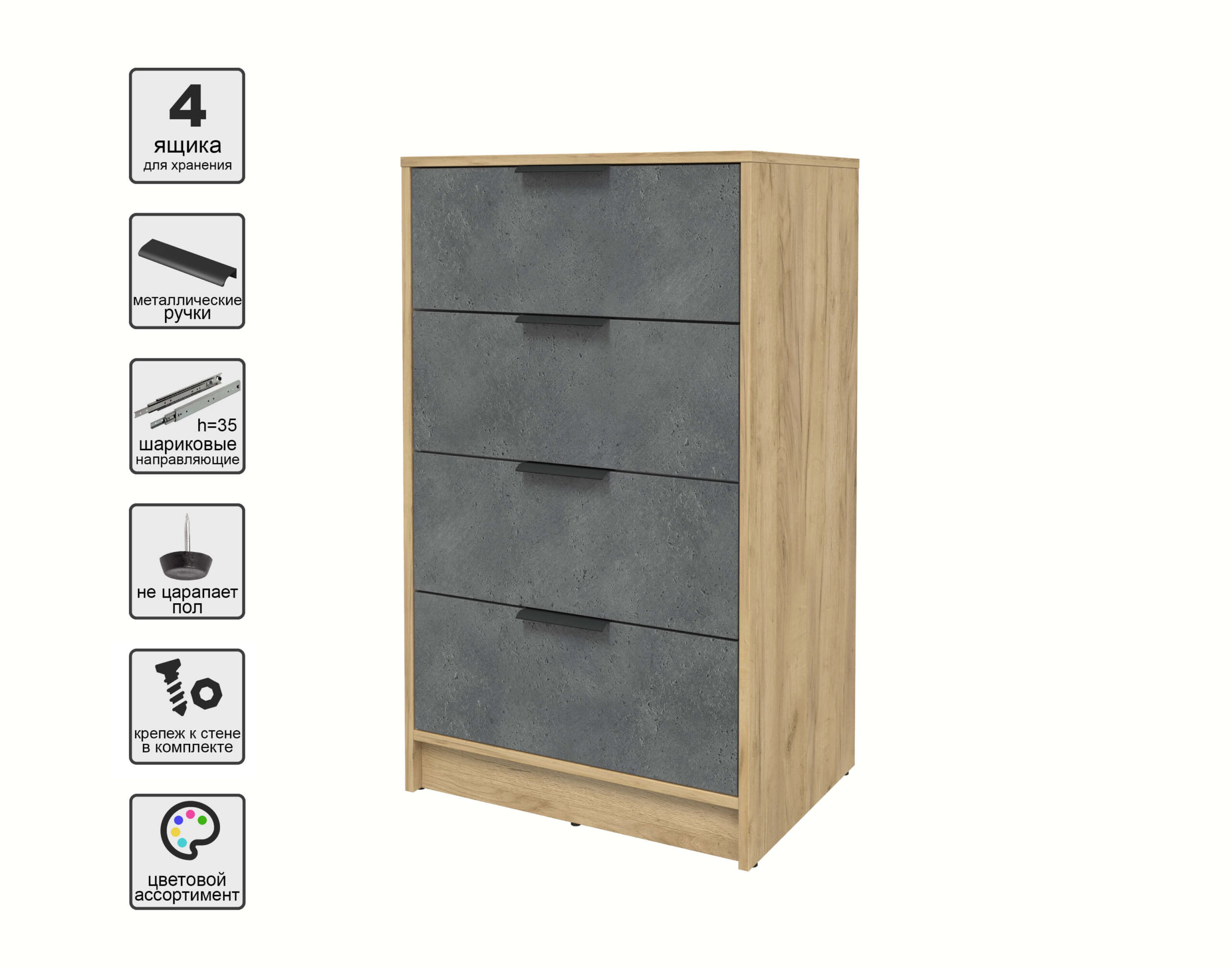 KОМОД КТ-К60 (ДУБ ЗОЛОТОЙ ЛДСП/ БЕТОН ПОРТЛЕНД ЛДСП) Ш600 В1020 Г451 - Yuta.by
