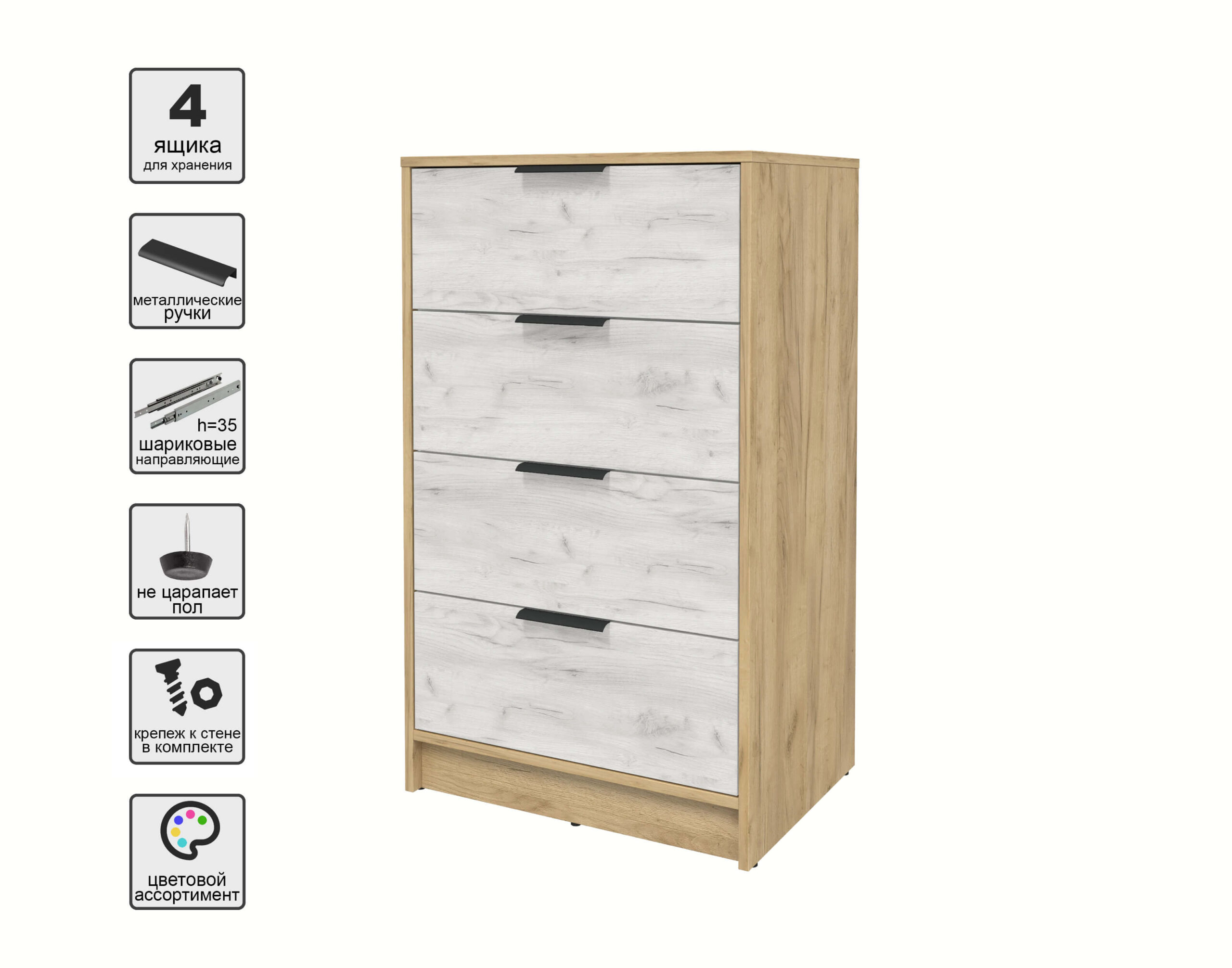 KОМОД КТ-К60 (ДУБ ЗОЛОТОЙ ЛДСП/ ДУБ БЕЛЫЙ ЛДСП) Ш600 В1020 Г451 - Yuta.by