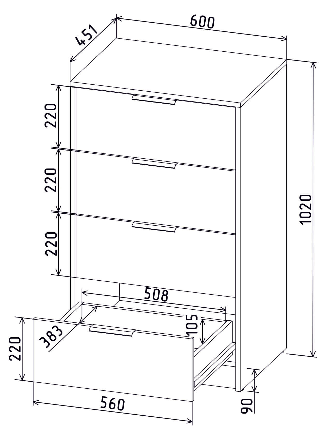 KОМОД КТ-К60 (ДУБ ЗОЛОТОЙ ЛДСП/ ДУБ НОКС ЛДСП) Ш600 В1020 Г451
