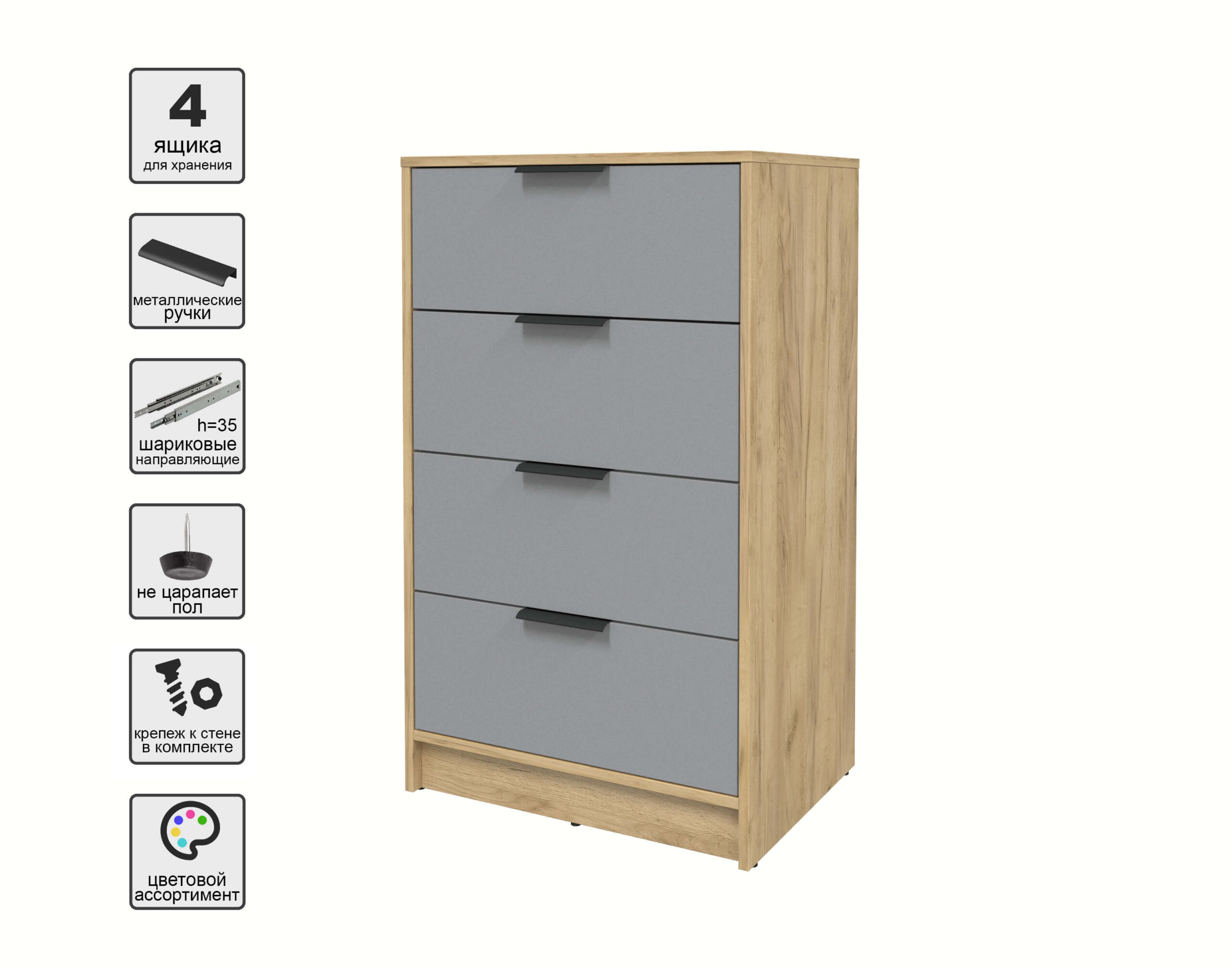 KОМОД КТ-К60 (ДУБ ЗОЛОТОЙ ЛДСП/ СЕРЕБРО ЛДСП) Ш600 В1020 Г451
