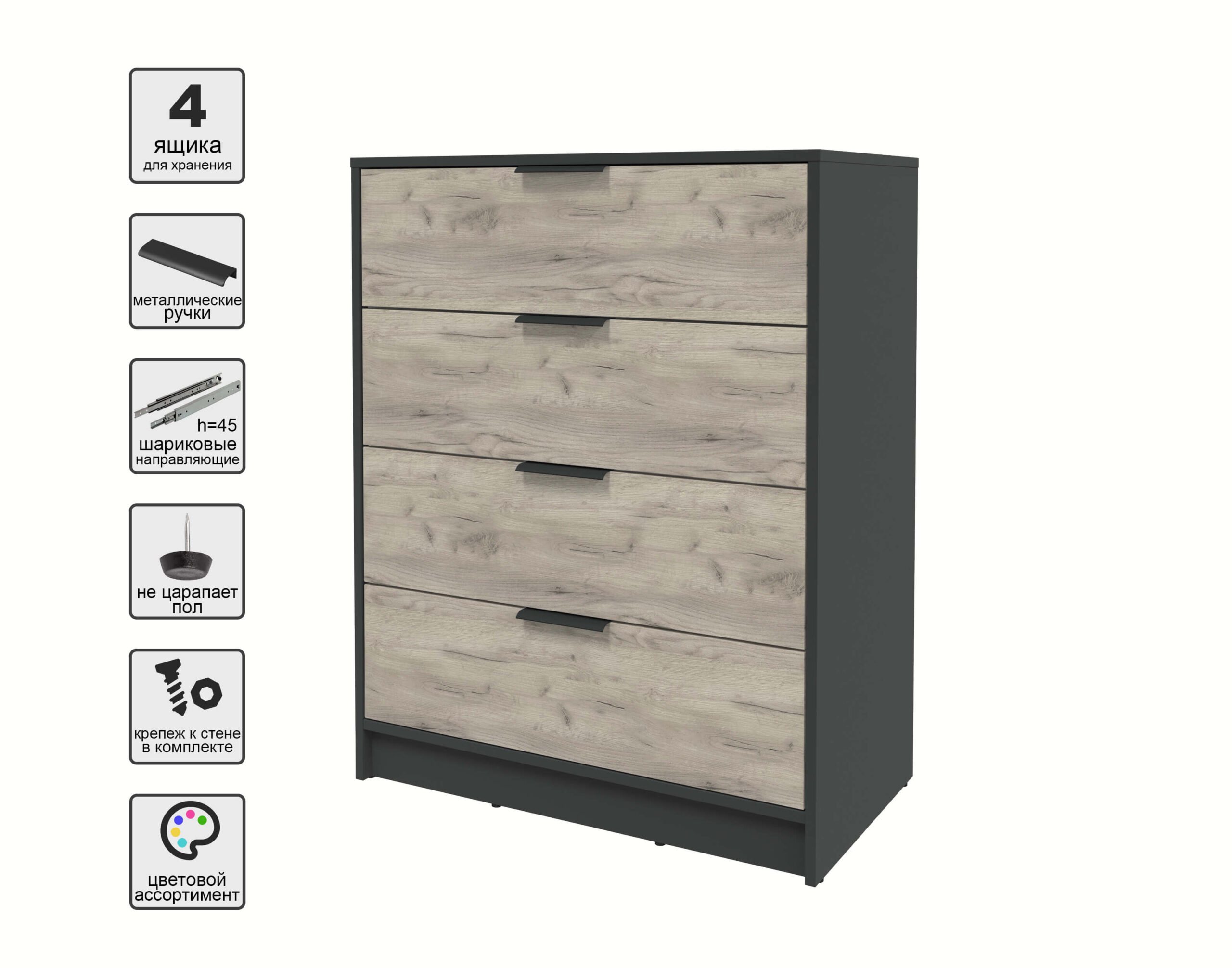 KОМОД КТ-К80 (АНТРАЦИТ ЛДСП/ ДУБ СЕРЫЙ ЛДСП) Ш800 В1020 Г451 - Yuta.by