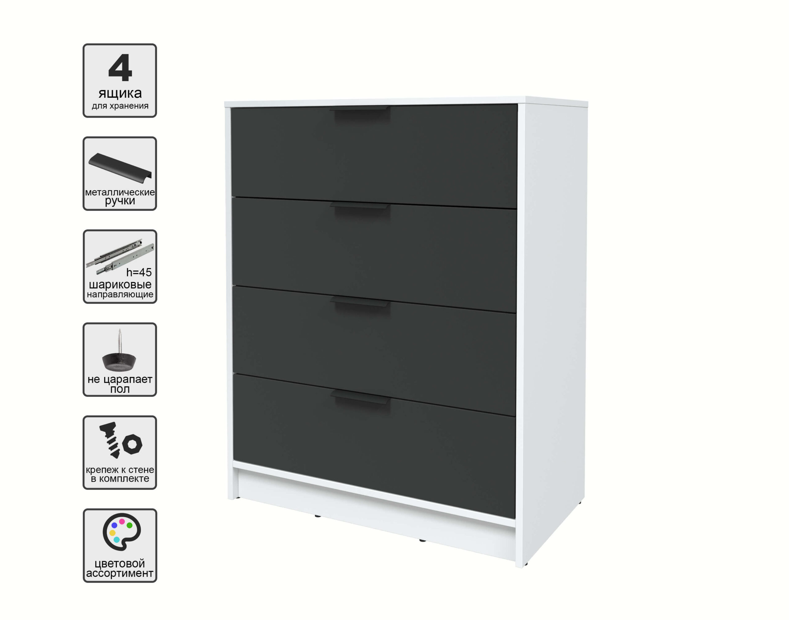 KОМОД КТ-К80 (БЕЛЫЙ ЛДСП/ АНТРАЦИТ ЛДСП) Ш800 В1020 Г451 - Yuta.by