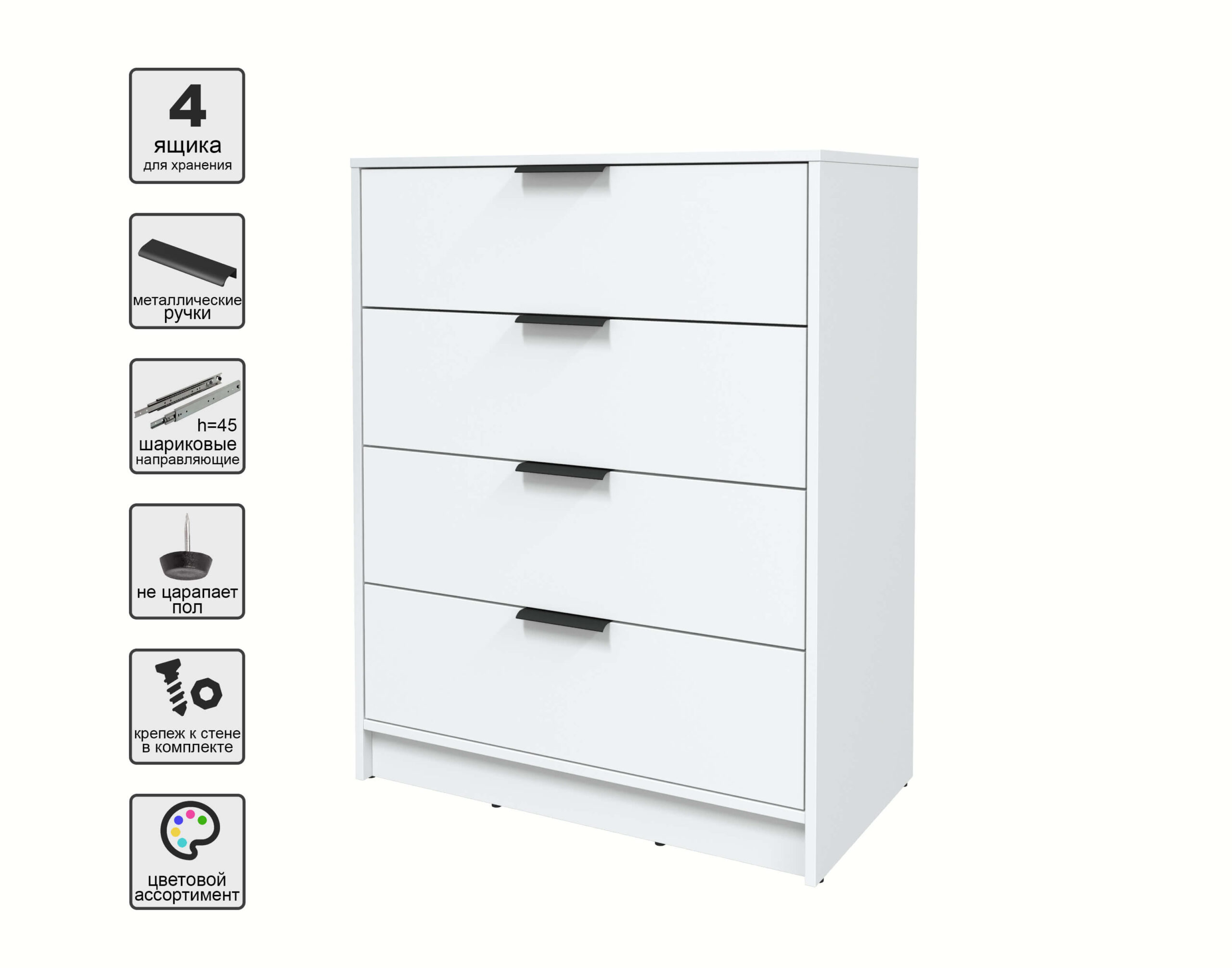 KОМОД КТ-К80 (БЕЛЫЙ ЛДСП/ БЕЛЫЙ ПЛАТИНУМ ЛДСП) Ш800 В1020 Г451