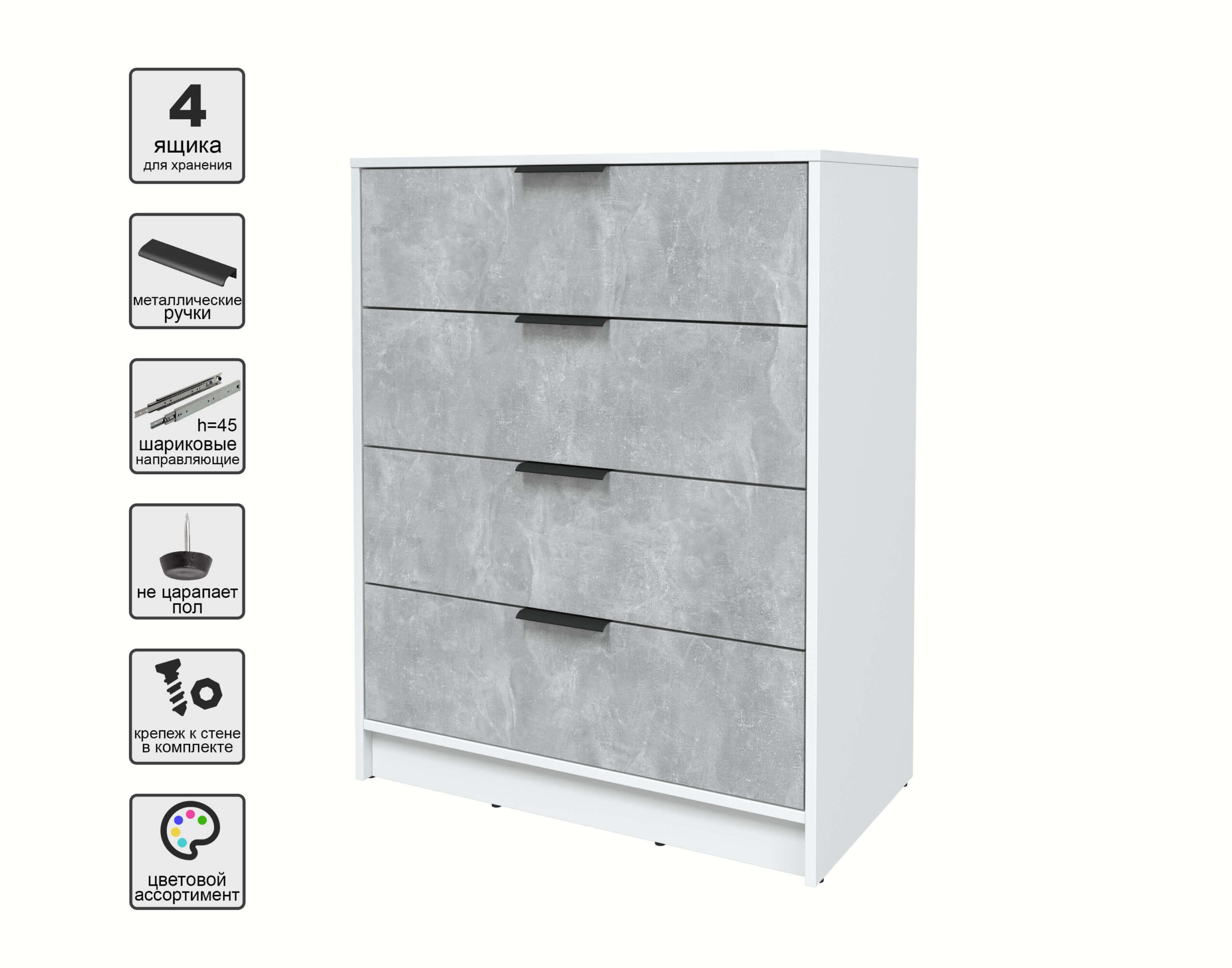 KОМОД КТ-К80 (БЕЛЫЙ ЛДСП/ БЕТОН ЛДСП) Ш800 В1020 Г451