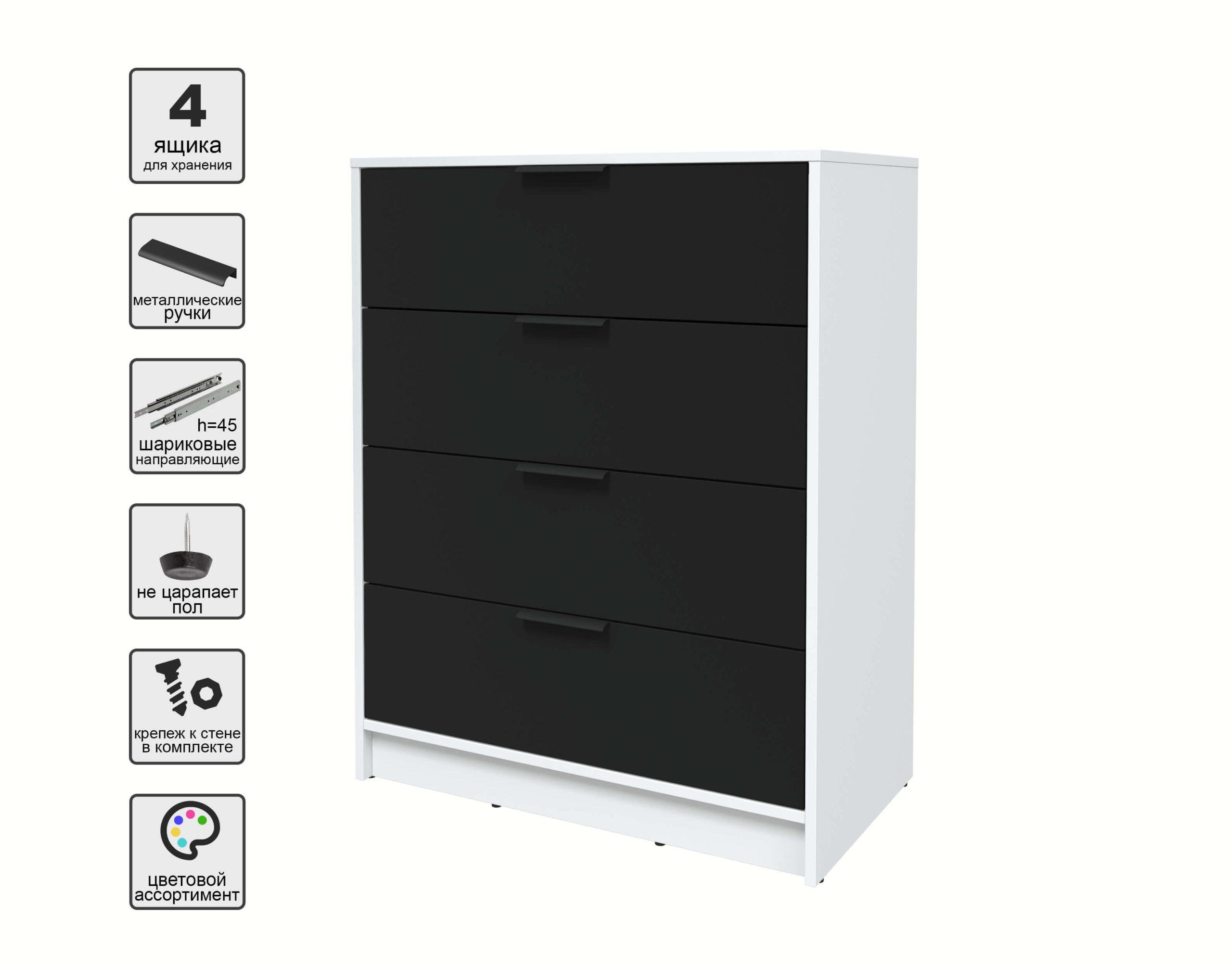 KОМОД КТ-К80 (БЕЛЫЙ ЛДСП/ ЧЕРНЫЙ ЛДСП) Ш800 В1020 Г451