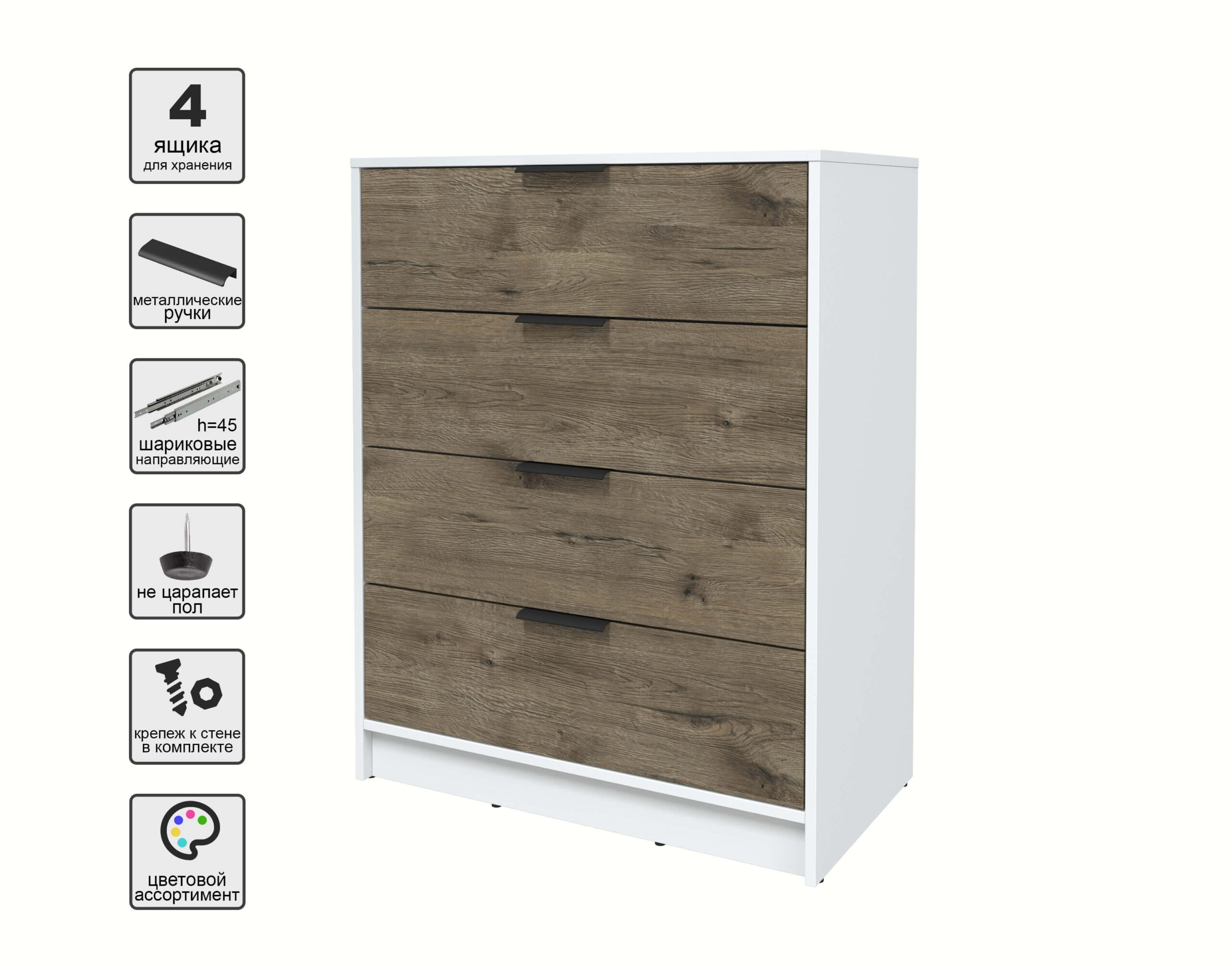 KОМОД КТ-К80 (БЕЛЫЙ ЛДСП/ ДУБ ВЕЛЛИНГТОН ЛДСП) Ш800 В1020 Г451