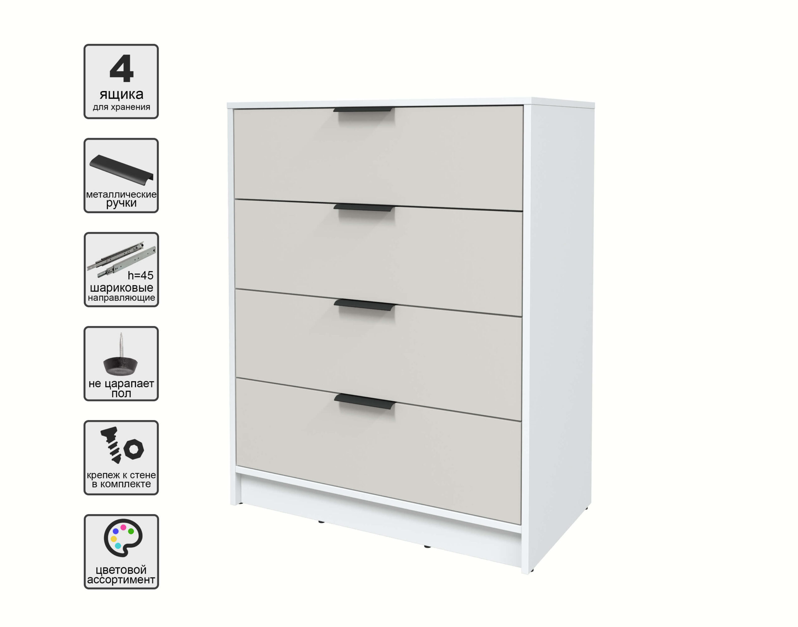 KОМОД КТ-К80 (БЕЛЫЙ ЛДСП/ ПЕРСИДСКИЙ ЖЕМЧУГ ЛДСП) Ш800 В1020 Г451