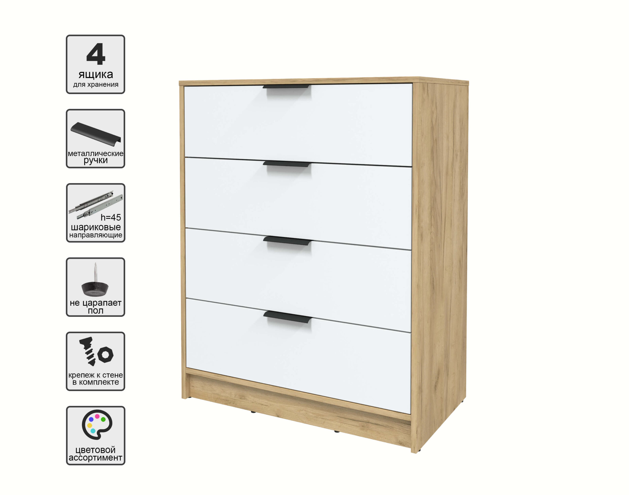 KОМОД КТ-К80 (ДУБ ЗОЛОТОЙ ЛДСП/ БЕЛЫЙ ПЛАТИНУМ ЛДСП) Ш800 В1020 Г451 - Yuta.by