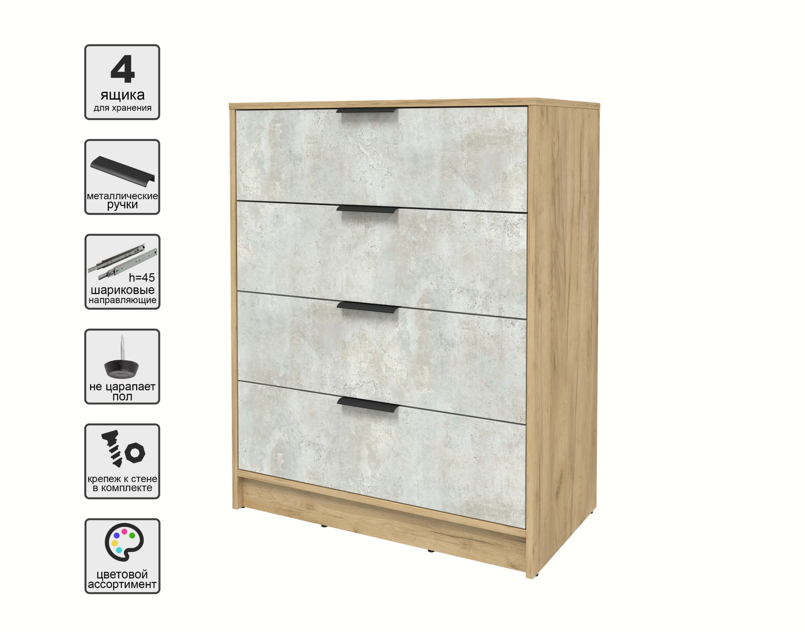 KОМОД КТ-К80 (ДУБ ЗОЛОТОЙ ЛДСП/ БЕТОН ЛАЙТ ЛДСП) Ш800 В1020 Г451 - Yuta.by