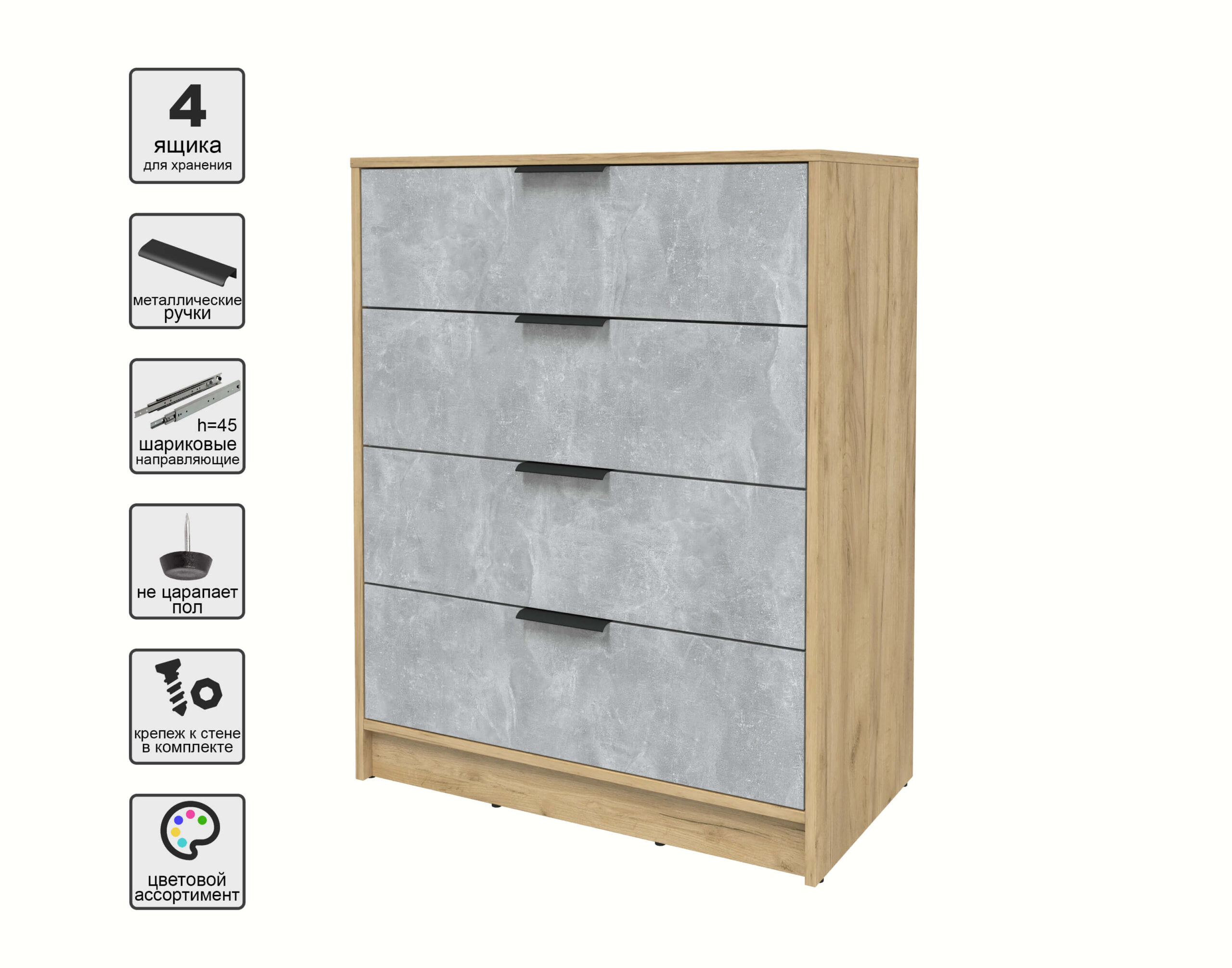 KОМОД КТ-К80 (ДУБ ЗОЛОТОЙ ЛДСП/ БЕТОН ЛДСП) Ш800 В1020 Г451