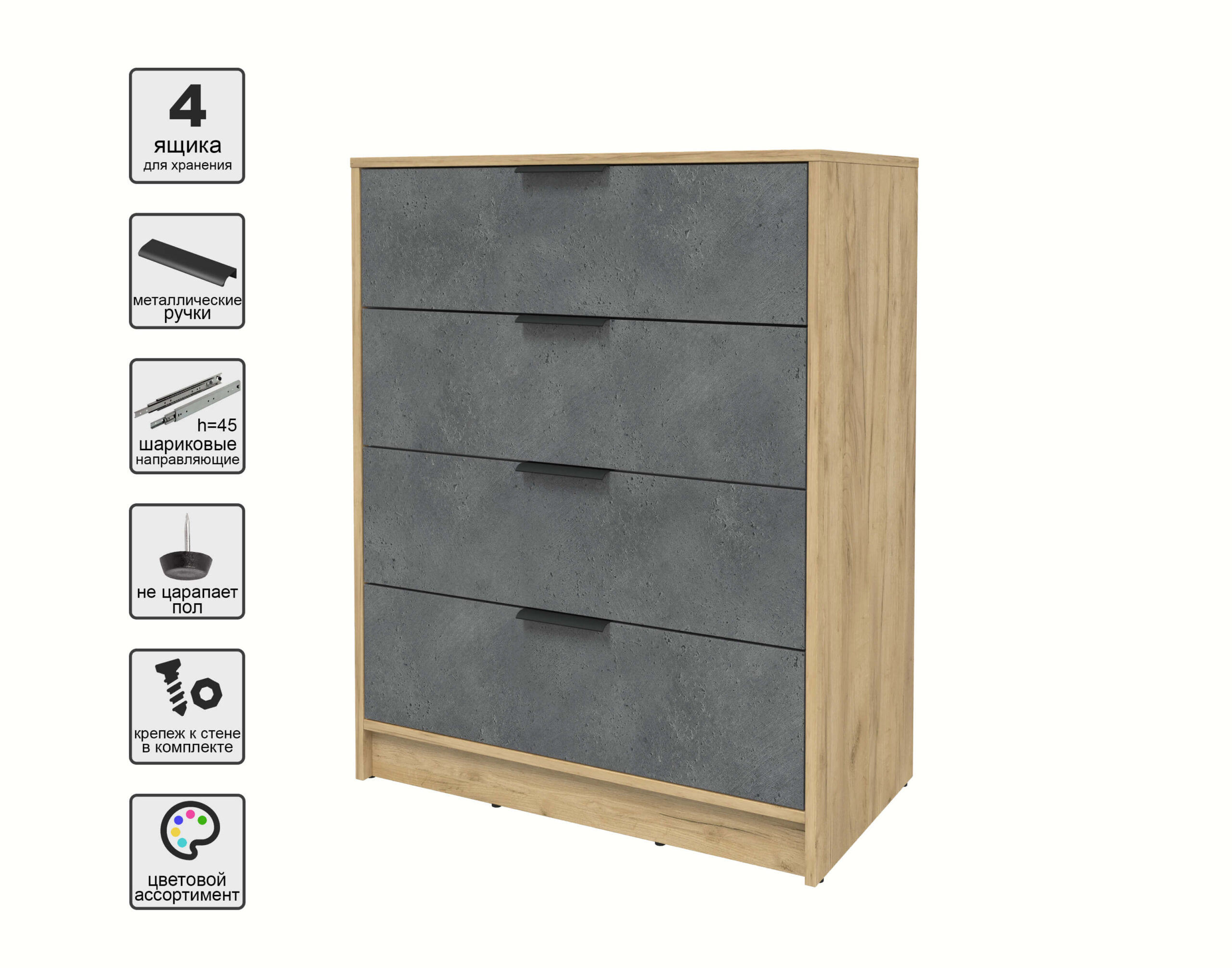 KОМОД КТ-К80 (ДУБ ЗОЛОТОЙ ЛДСП/ БЕТОН ПОРТЛЕНД ЛДСП) Ш800 В1020 Г451