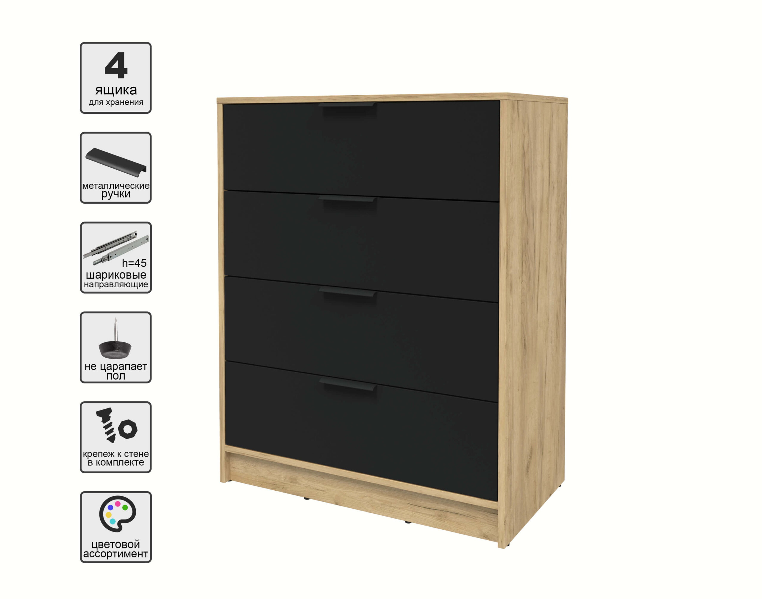 KОМОД КТ-К80 (ДУБ ЗОЛОТОЙ ЛДСП/ ЧЕРНЫЙ ЛДСП) Ш800 В1020 Г451 - Yuta.by