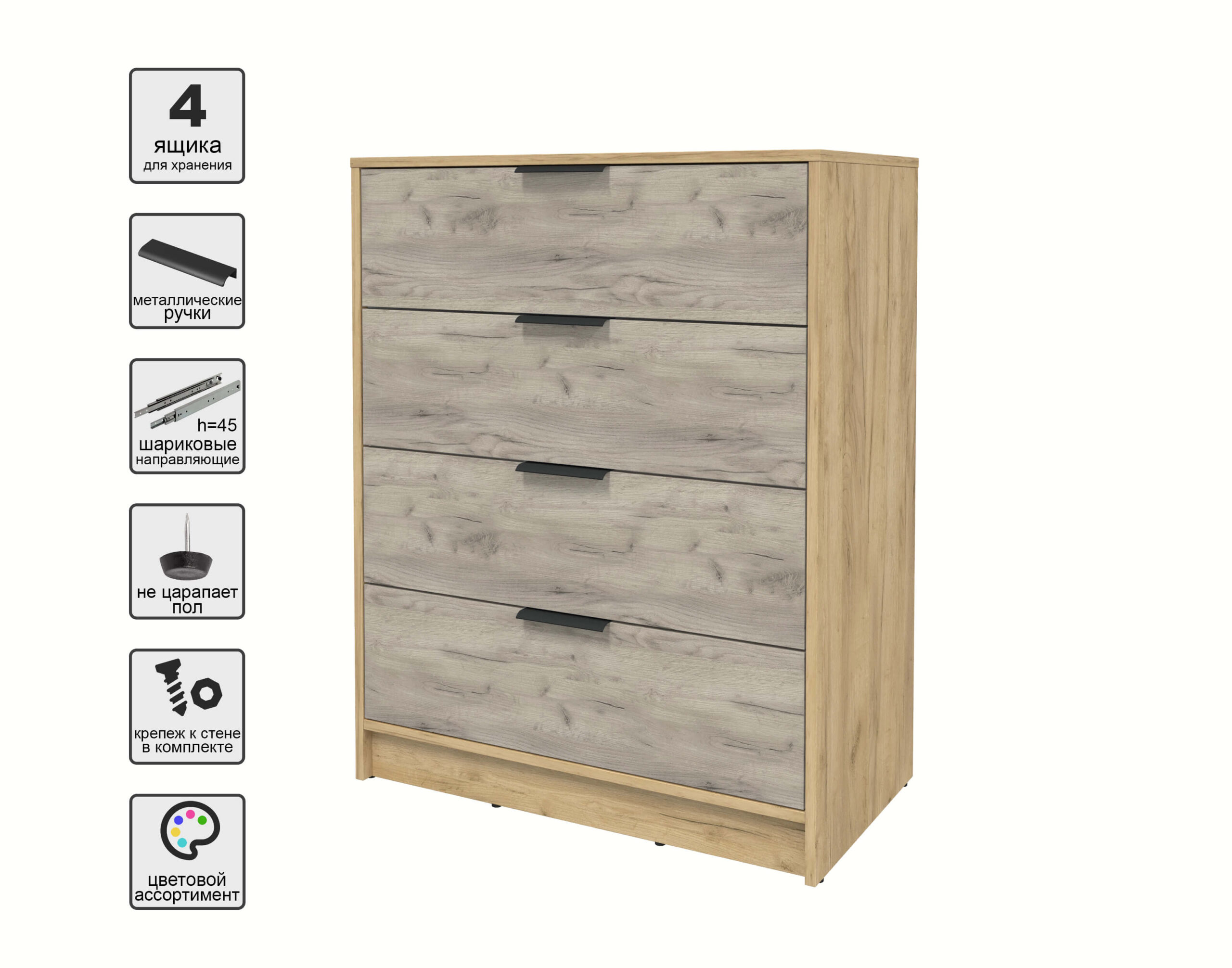 KОМОД КТ-К80 (ДУБ ЗОЛОТОЙ ЛДСП/ ДУБ СЕРЫЙ ЛДСП) Ш800 В1020 Г451 - Yuta.by