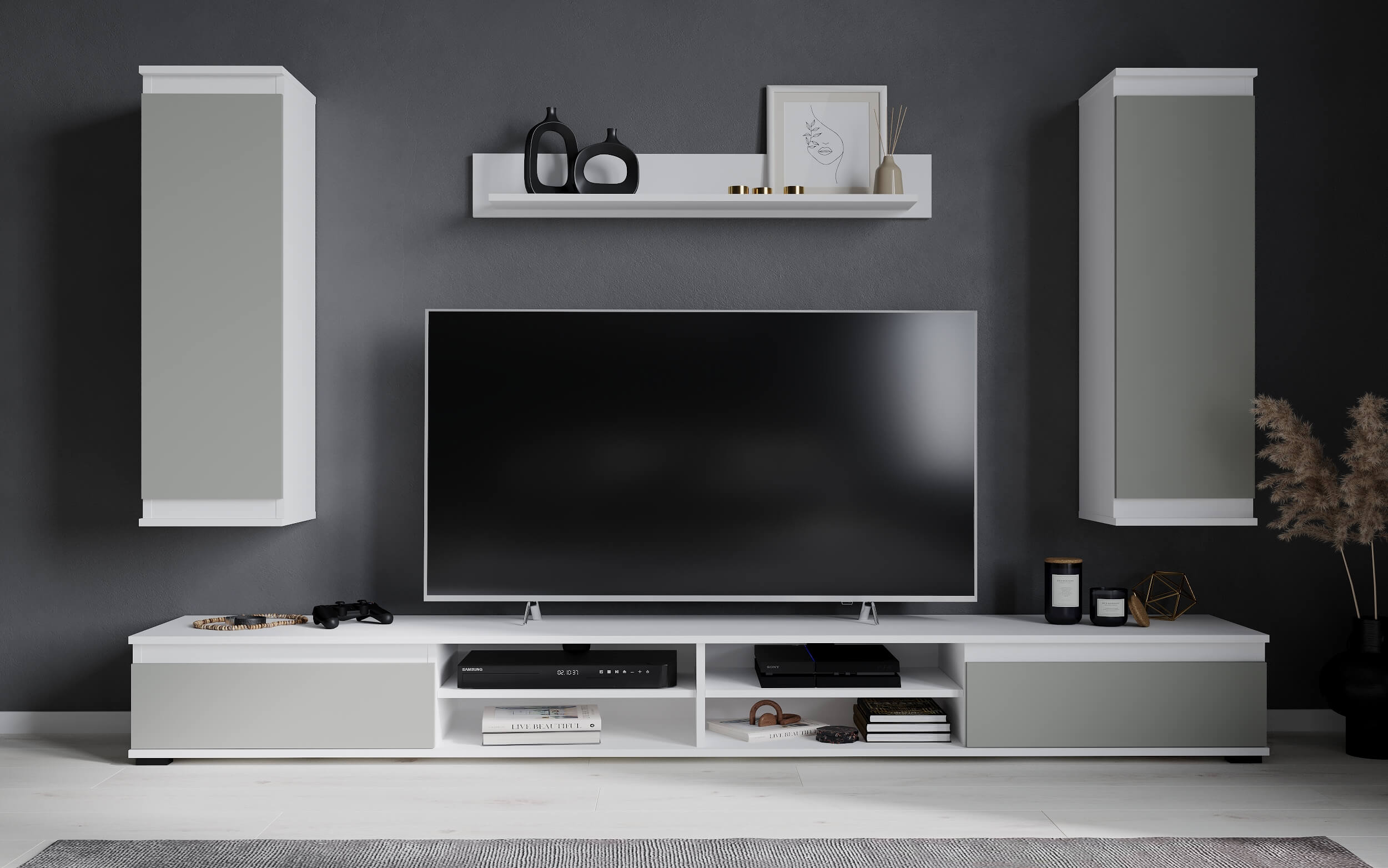 НАБОР МЕБЕЛИ ДЛЯ ГОСТИНОЙ NEO-3 (ПЕПЕЛ СОФТ/ БЕЛЫЙ) Ш2200 В1770 Г370 БЕЗ ПОДСВЕТКИ - Yuta.by