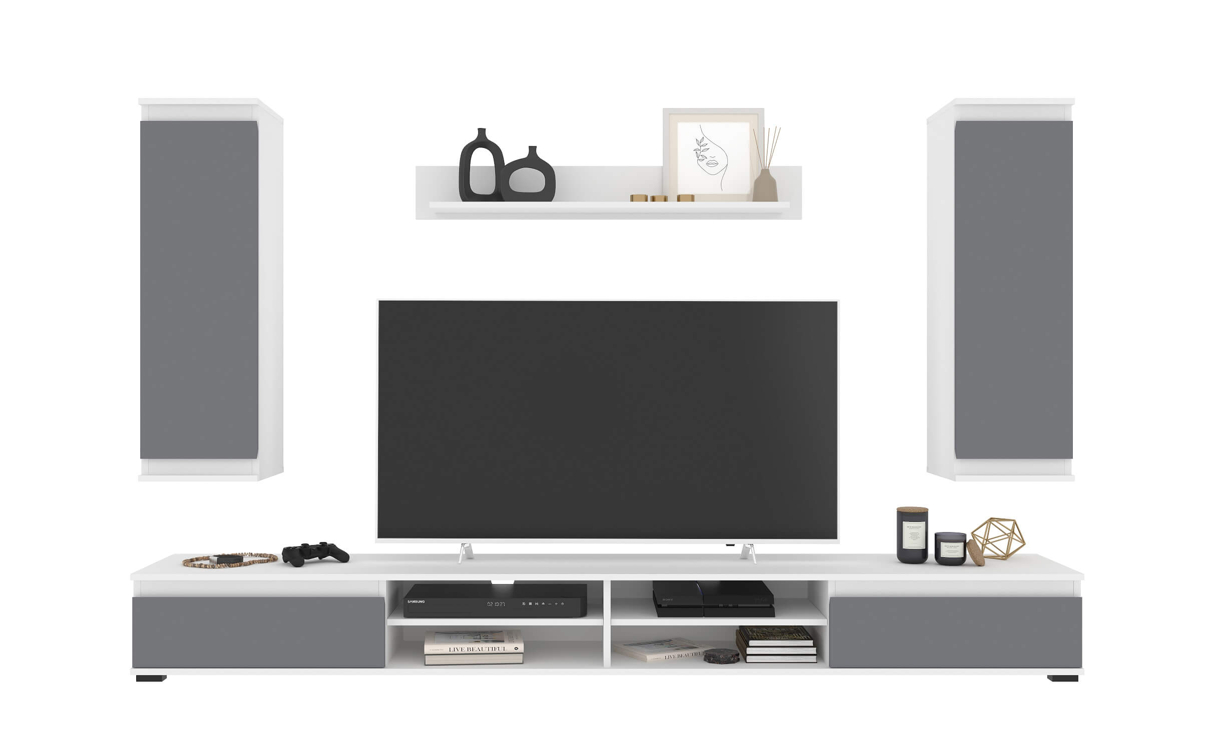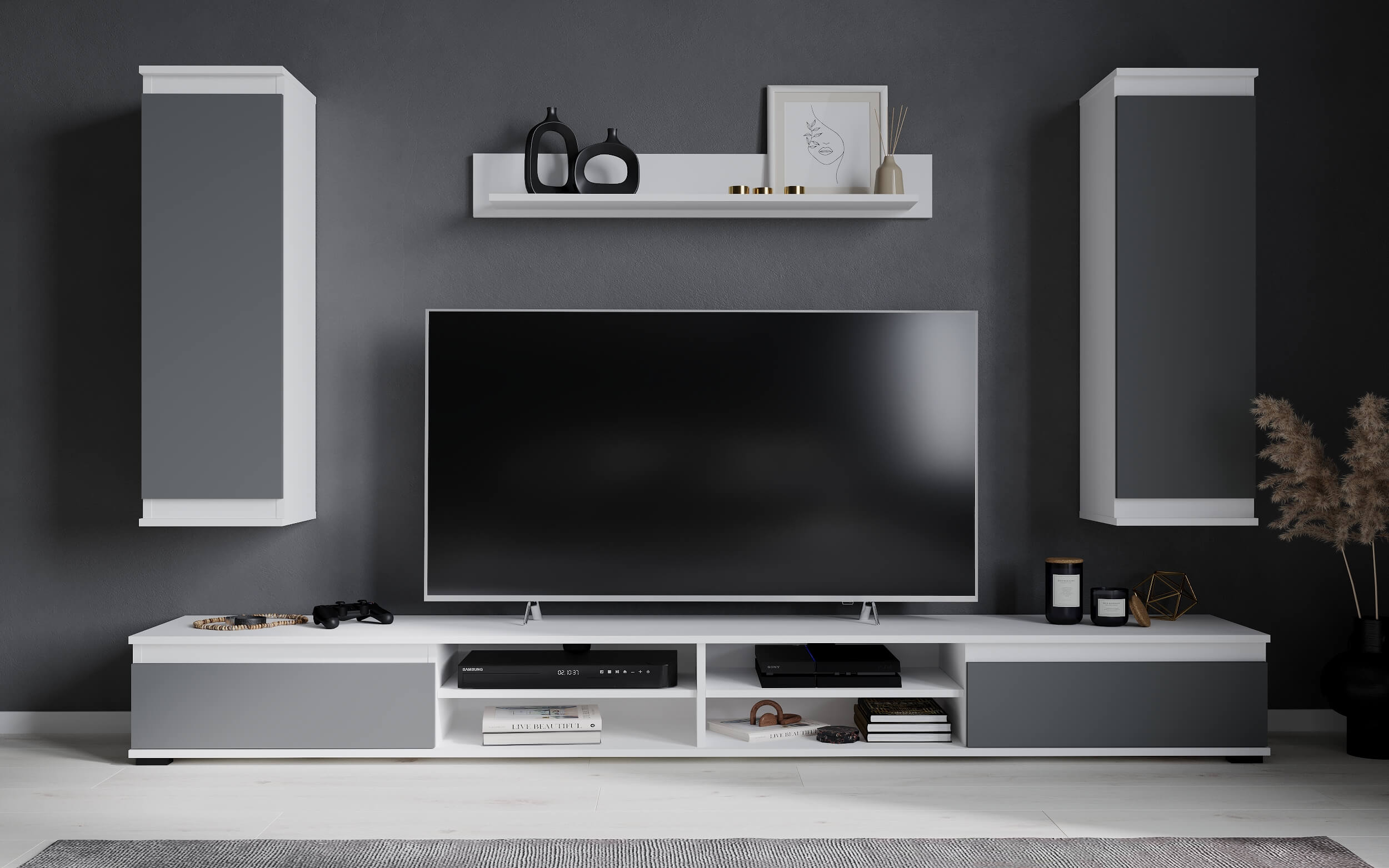 НАБОР МЕБЕЛИ ДЛЯ ГОСТИНОЙ NEO-3 (СЕРЫЙ СОФТ/ БЕЛЫЙ) Ш2200 В1770 Г370 БЕЗ ПОДСВЕТКИ - Yuta.by