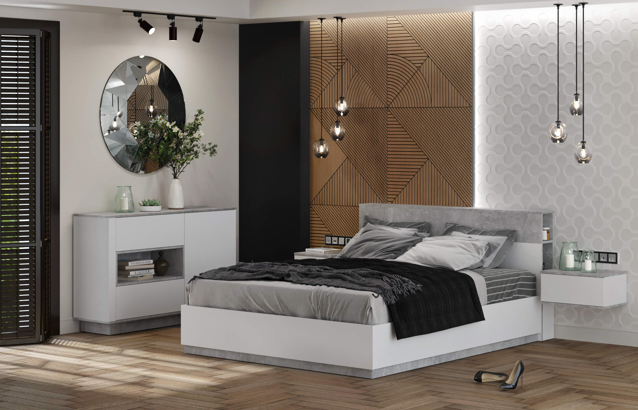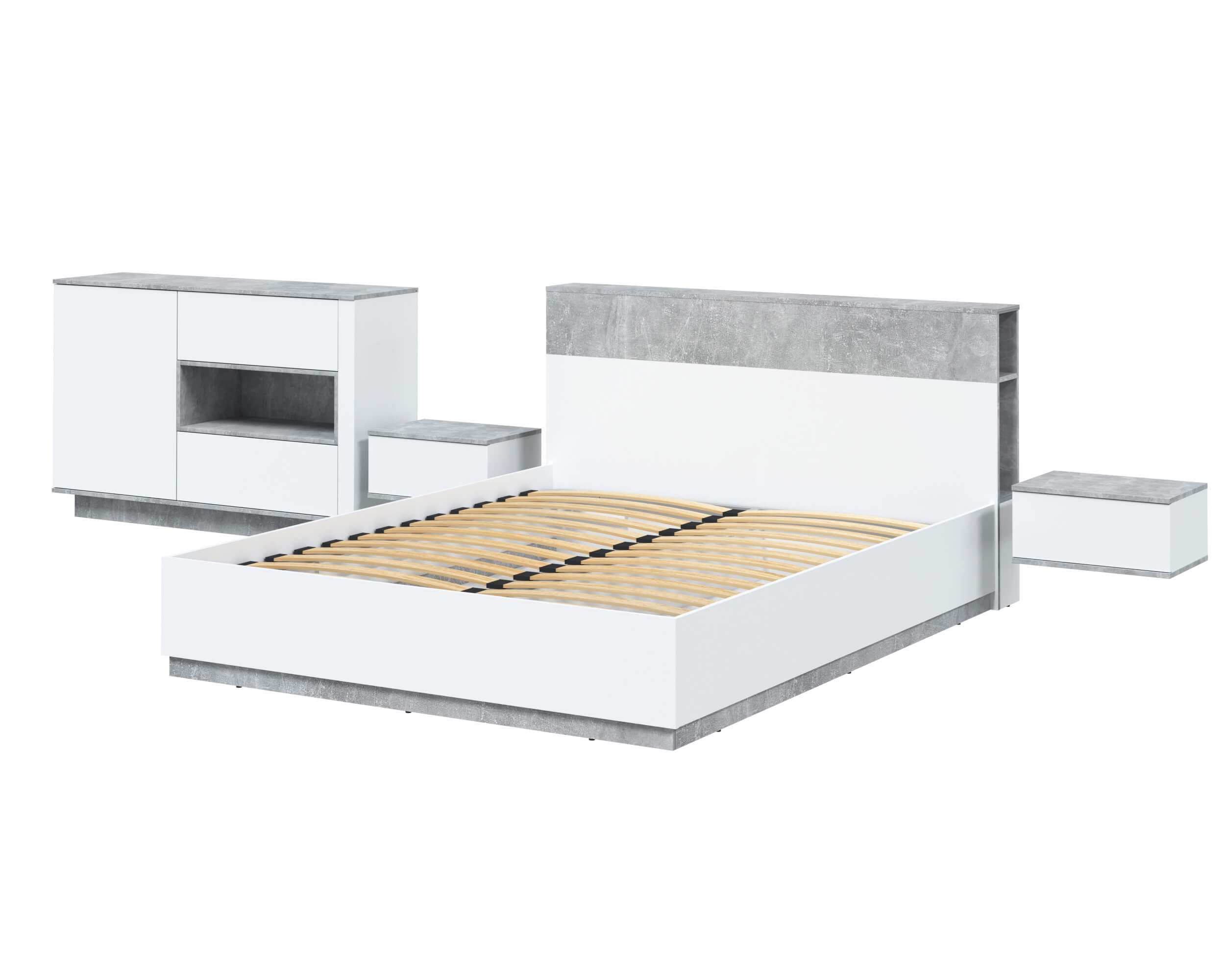 НАБОР МЕБЕЛИ ДЛЯ СПАЛЬНИ QUARTZ-15 Ш4066 В943 Г2216 (БЕЛЫЙ ПЛАТИНУМ/ БЕТОН) - Yuta.by