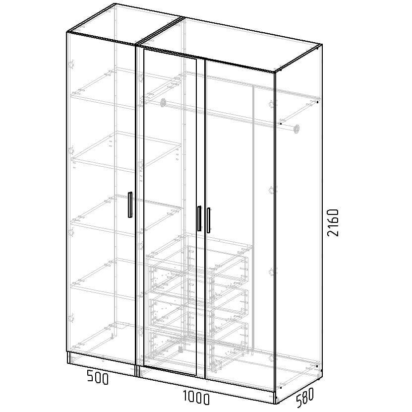 НАБОР МЕБЕЛИ МАРСЕЛЬ-4 МР 01-04 (ЛДСП ГРАФИТ СЕРЫЙ) Ш1500 В2160 Г580 - Yuta.by