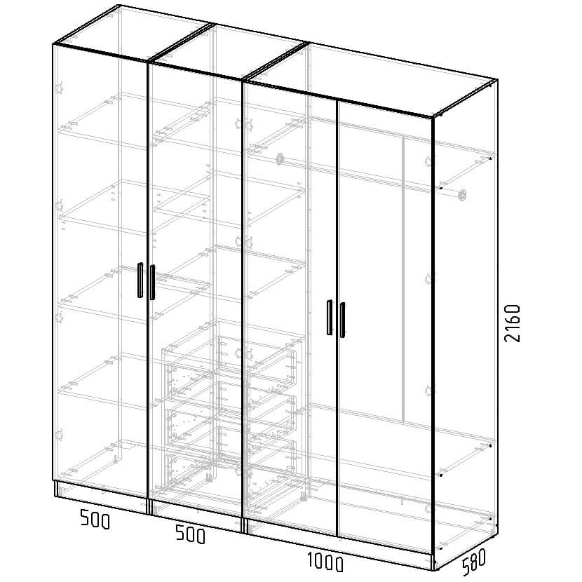 НАБОР МЕБЕЛИ МАРСЕЛЬ-7 МР 01-07 (ЛДСП ШИНШИЛА СЕРАЯ) Ш2000 В2160 Г580 - Yuta.by