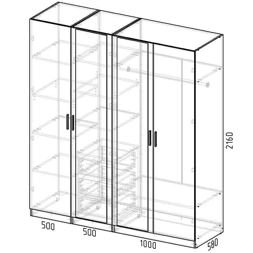 НАБОР МЕБЕЛИ МАРСЕЛЬ-8 МР 01-08 (ЛДСП ГРАФИТ СЕРЫЙ) Ш2000 В2160 Г580 - Yuta.by