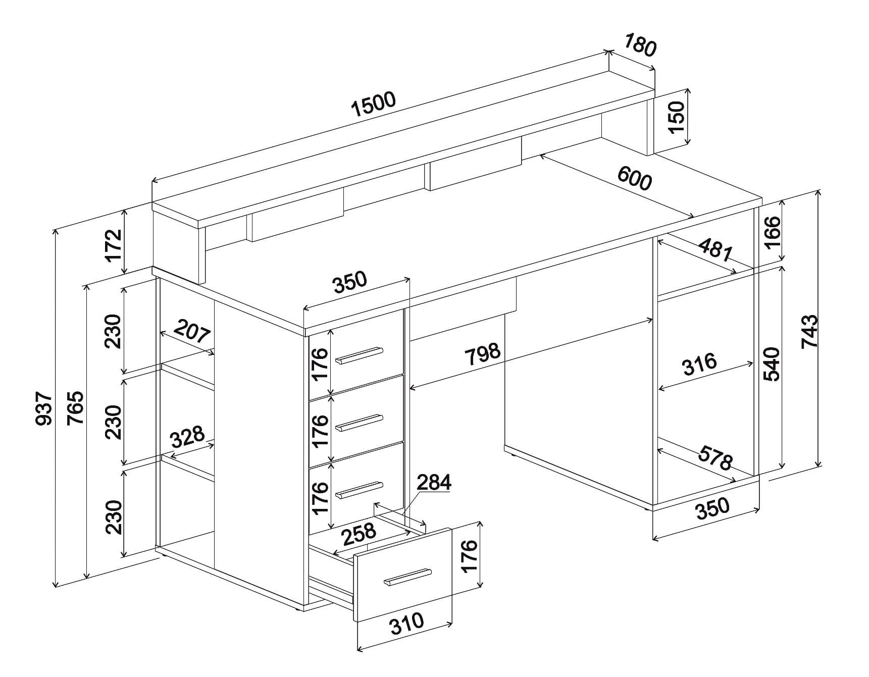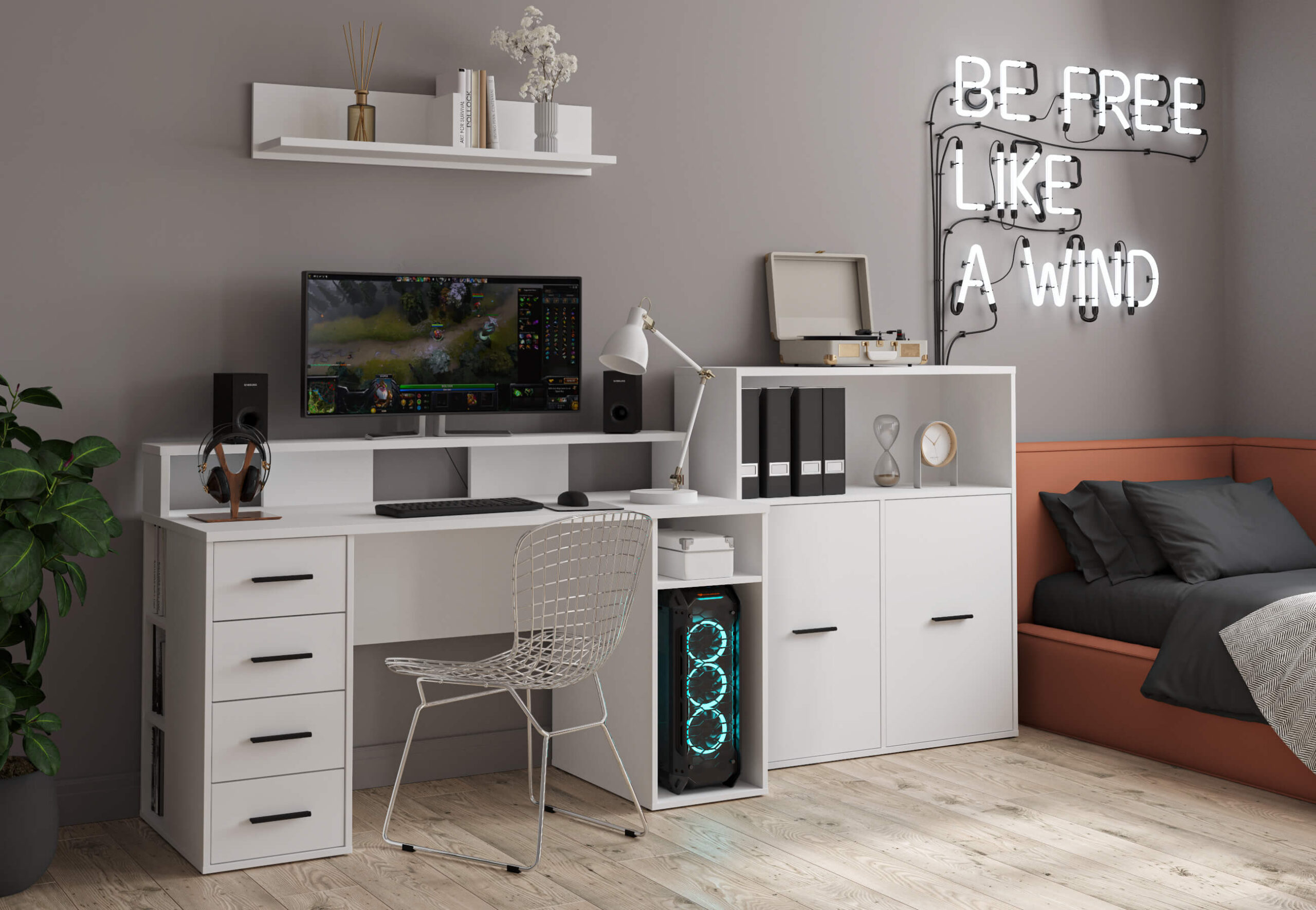 Коллекция компьютерных столов, стеллажей, полок и комодов «Skill»: