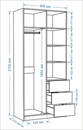 ШКАФ ДЛЯ ОДЕЖДЫ «УНИВЕРСАЛ» (УН-02-03, БОДЕГА БЕЛЫЙ)
