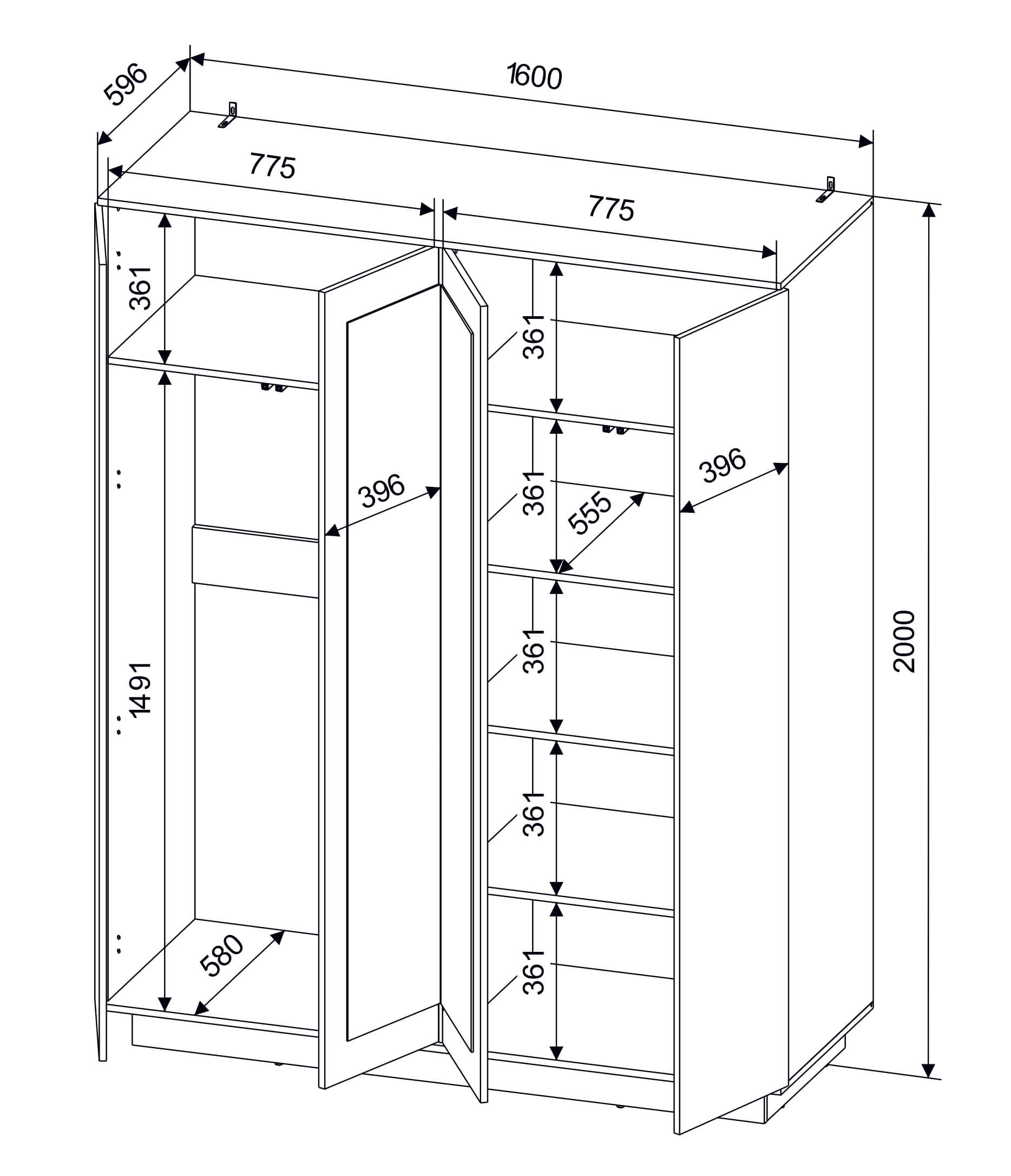 ШКАФ КОМБИНИРОВАННЫЙ QZ-ШК3 (БЕЛЫЙ ПЛАТИНУМ/ БЕТОН) Ш1600 В2000 Г596