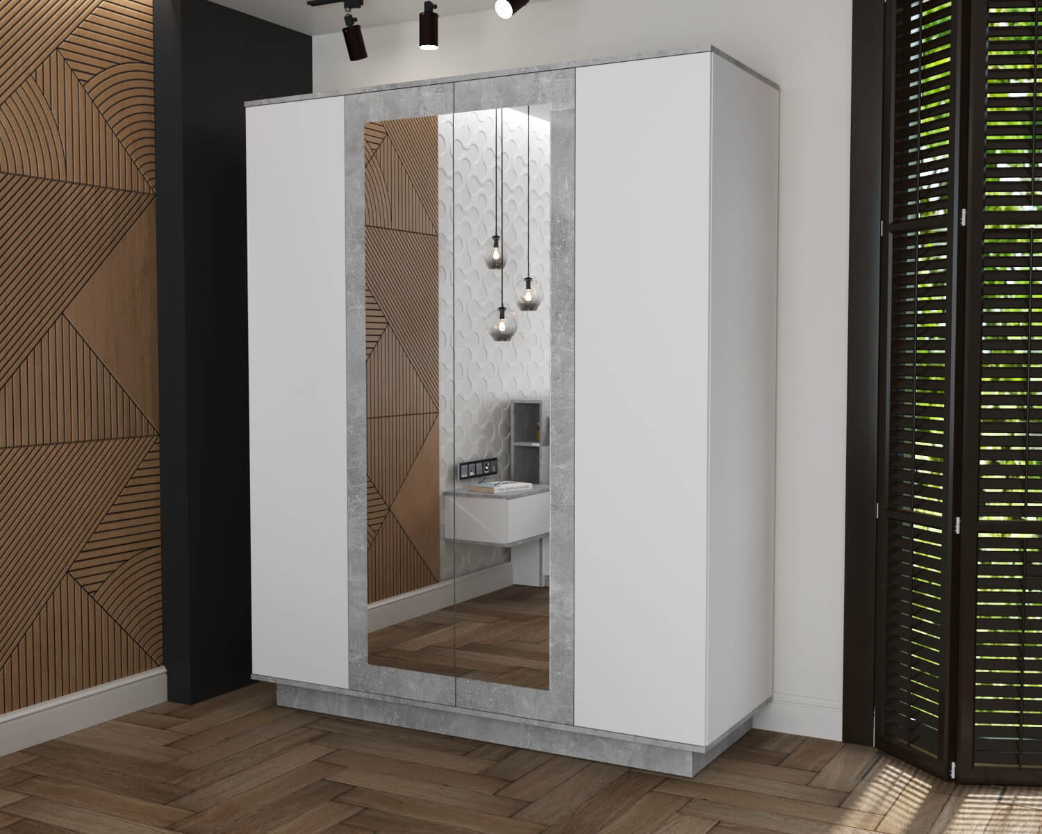 ШКАФ КОМБИНИРОВАННЫЙ QZ-ШК3 (БЕЛЫЙ ПЛАТИНУМ/ БЕТОН) Ш1600 В2000 Г596 - Yuta.by