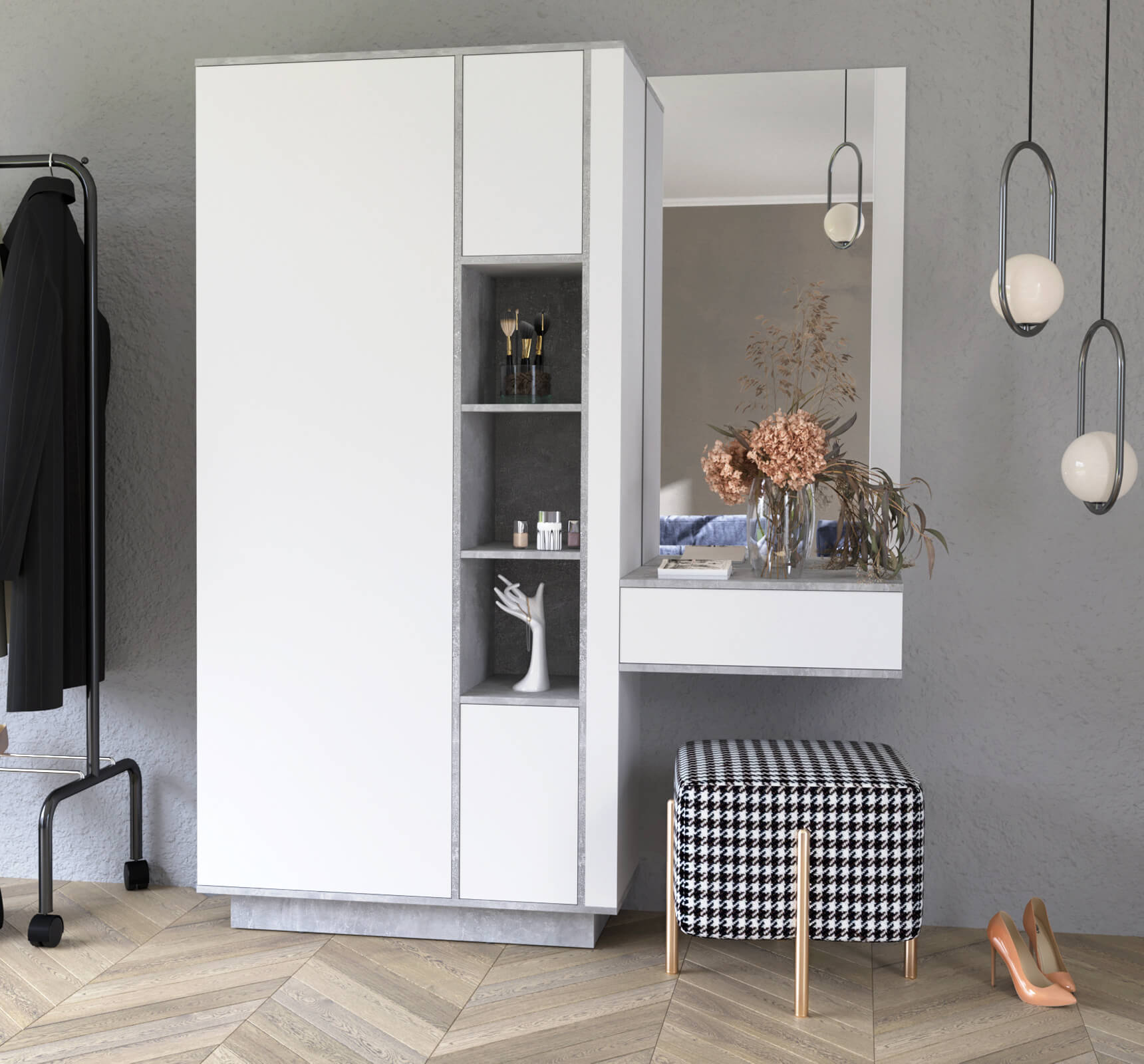 ШКАФ КОМБИНИРОВАННЫЙ QZ-ШК4 (БЕЛЫЙ ПЛАТИНУМ/ БЕТОН) Ш1570 В2000 Г396 - Yuta.by