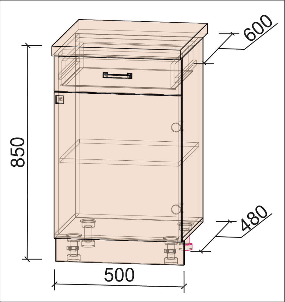 шкаф нижний под духовой шкаф шириной 600 мм;