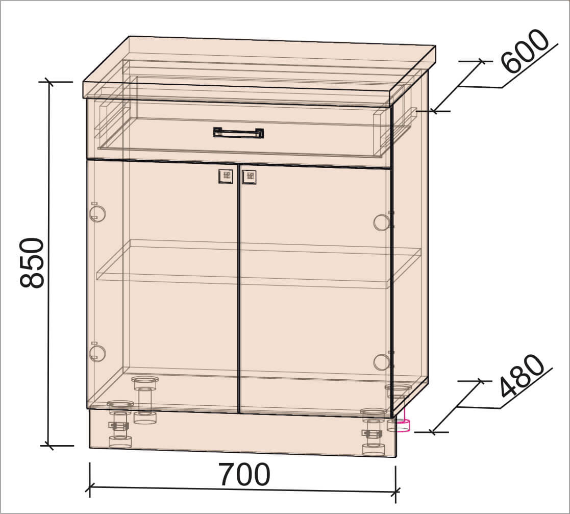 шкаф нижний для посудомоечной машины шириной 450 мм и 600 мм;
