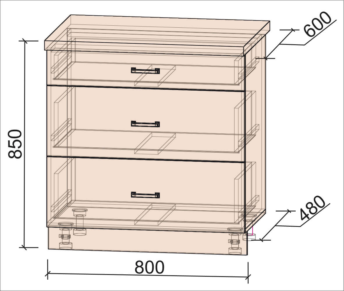 шкаф нижний под духовой шкаф шириной 600 мм;